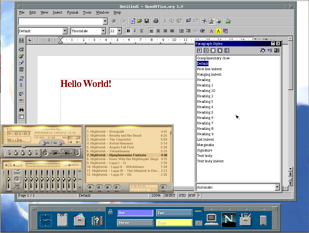 Итак, теперь система вполне подходит для жизни при тяжелых приступах ностальгии. Загрузка занимает не больше пары минут, после загрузки работает субъективно очень быстро. Большинство программ запускаются мгновенно, за исключением браузера, офисного пакеты и плеера. А уровень погружения в период — кажется улетает далеко за 100%. Можно слушать музыку, работать с документами и даже ходить в интернет.