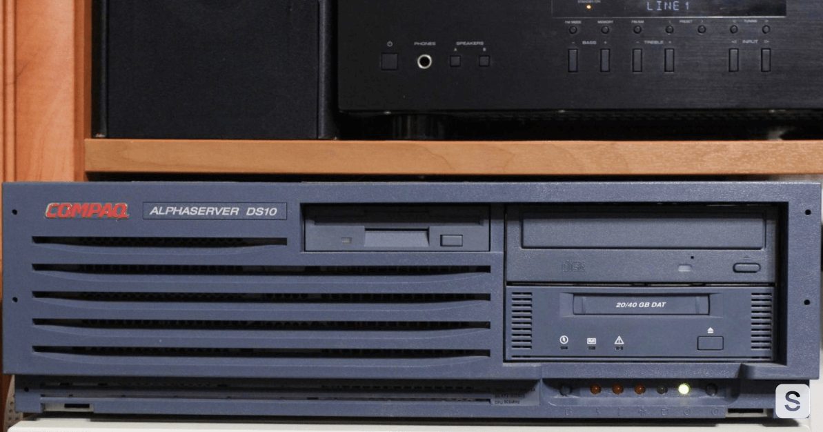 Представитель третьего поколения Alpha, попавший мне в руки — сервер. Сервер, выглядящий очень миловидно и до конца не определившийся кто же он такой — в зависимости от установленных плат расширения, он может быть как сервером, так и рабочей станцией. Его имя — AlphaServer DS10, но также он известен как AlphaStation XP900 и AlphaStation DS10. Наш экземпляр маркирован именно как сервер, но в нем установлена младшая из доступных для него видеокарт — 3DLabs Permedia 2 с 4 Мбайт видеопамяти.