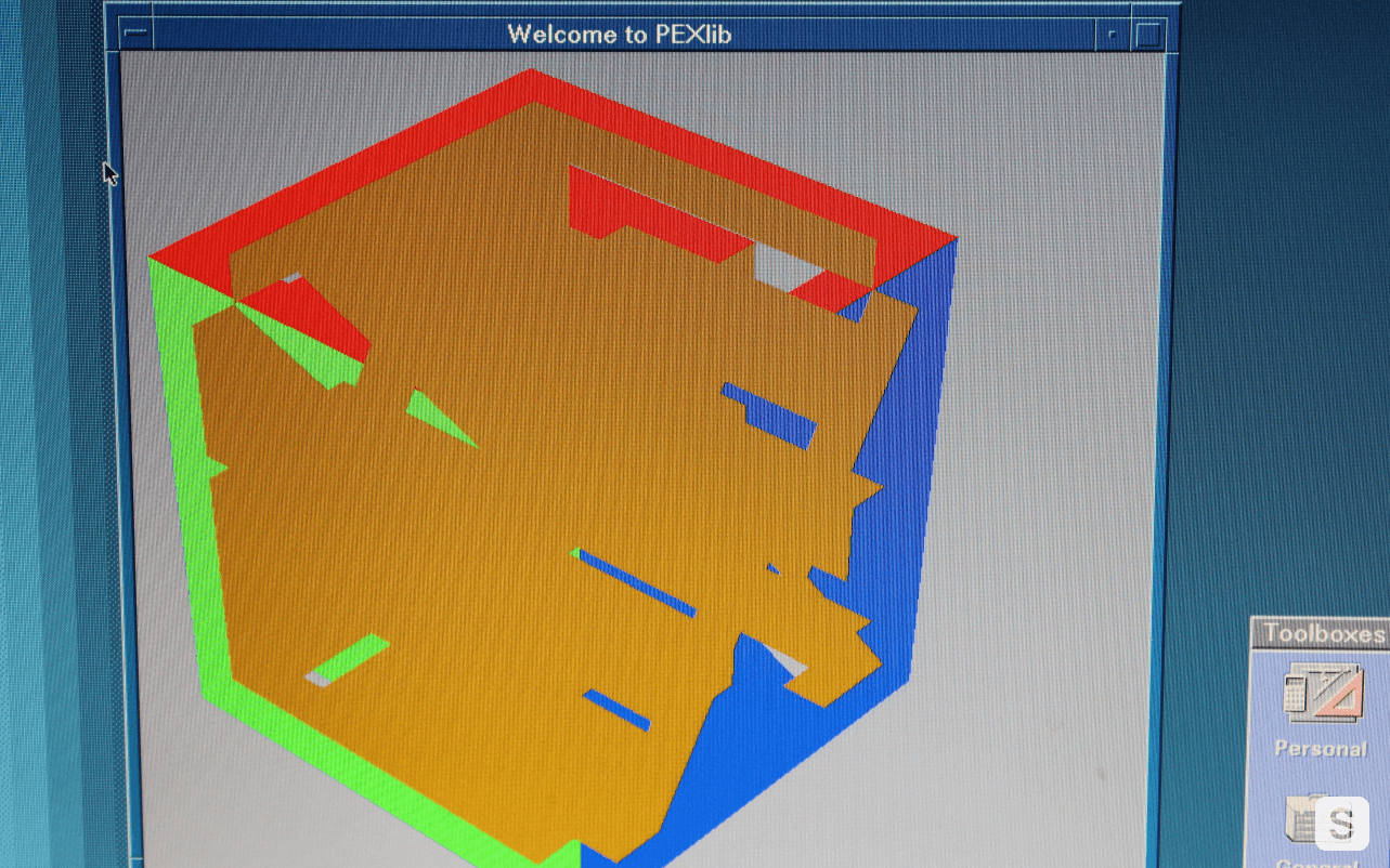 В те времена трехмерная графика использовалась в основном для проектирования и часто даже не подразумевала наложение текстур. Здесь оно уже есть, но посмотрите как скромно выглядит демонстрационная программа!