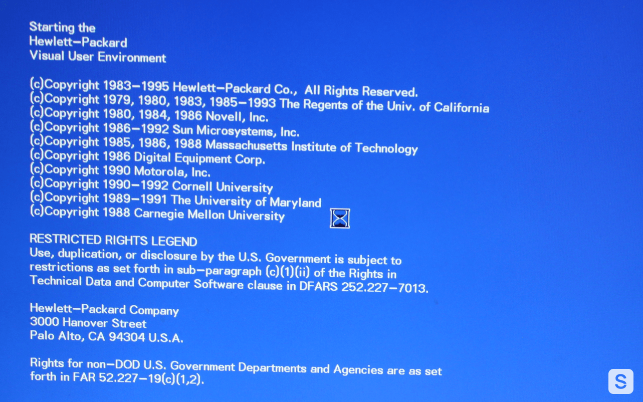Экран логина графической оболочки стилистически копирует бут-скрин, вплоть до размеров логотипа вендора. Вводим логин и пароль — получаем… синий экран! Не пугайтесь — это всего лишь внушительный список копирайтов компаний, чьи наработки используются в графической оболочке HP VUE (Visual User Environment).