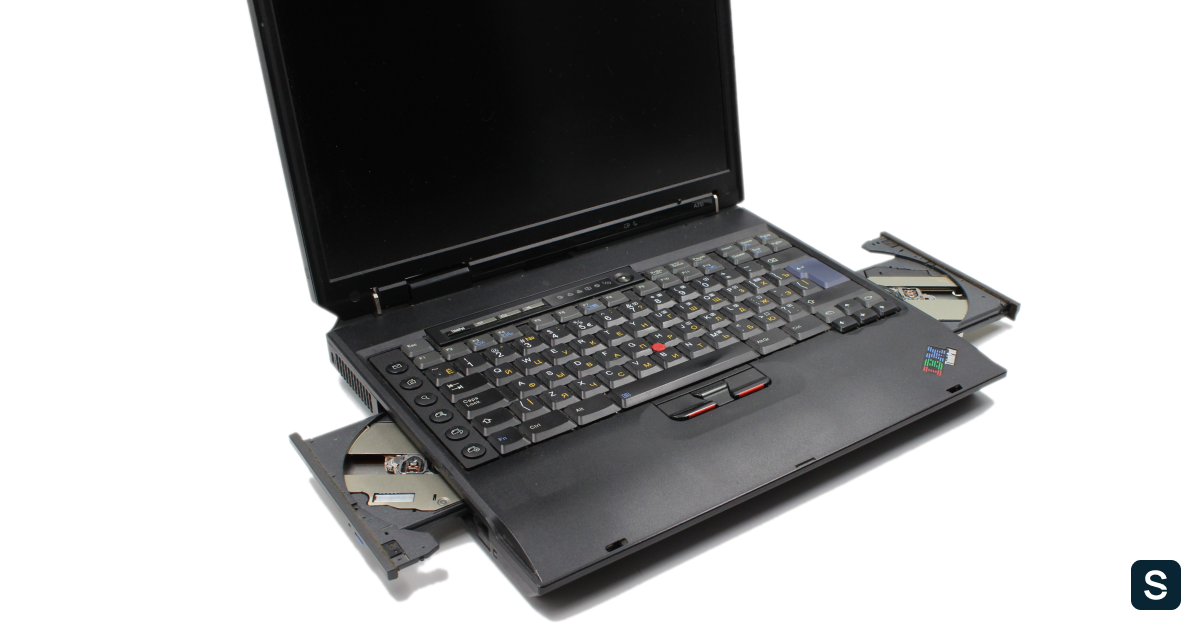 Два. Два, Карл! Два пишущих комбо-привода (а кому-то повезло получить пару DVD-RAM!). Оба — с возможность горячей замены. Замены на что? На любой другой оптический привод, дополнительный жесткий диск, дисковод FDD или LS-120, мини-крэдл для наладонника IBM WorkPad (Palm III) или даже просто цифровую клавиатуру.