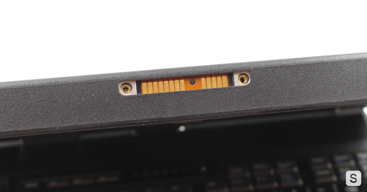 Спереди традиционно только колонки, снизу — разъем док-станции и батарея. Самый неожиданный порт, UltraPort (суть USB с проприетарным разъемом) расположен на крышке экрана. Для него было выпущено не так много устройств, самым полезным из которых была … веб-камера.