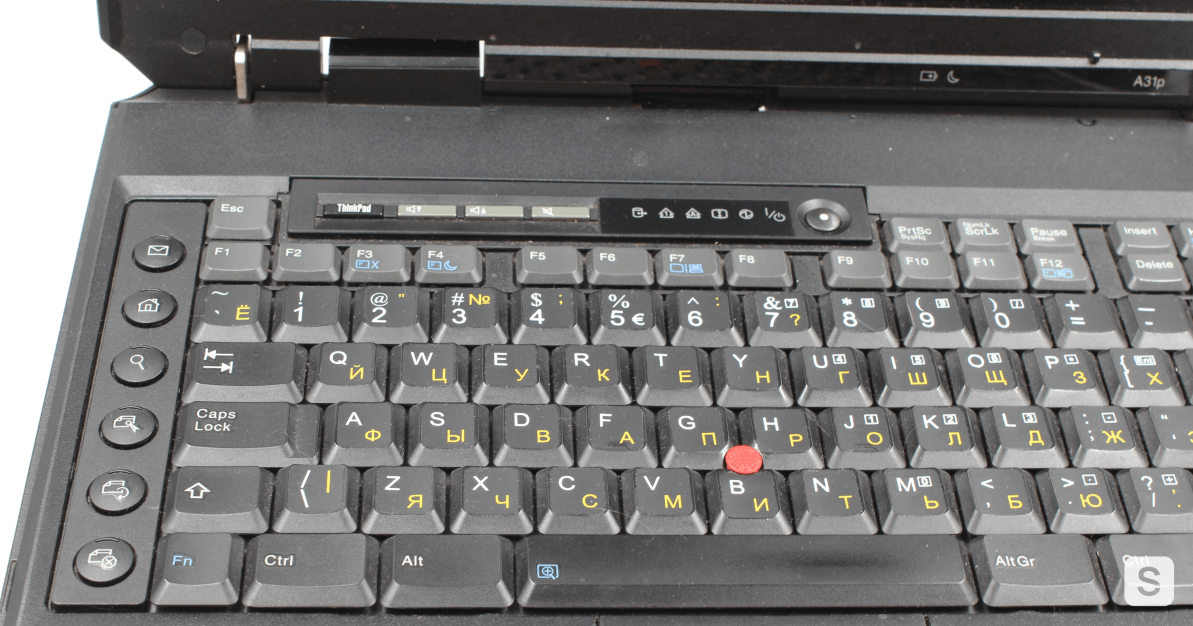 Клавиатура благодаря большой ширине корпуса снабжена дополнительными кнопками-ярлыками слева. Удобство печати — на уровне любого классического ThinkPad. А вот тачпада еще нет — он появится впервые в Т30, вышедшем на два месяца позже. Про экран великолепного качества я уже упомянул.