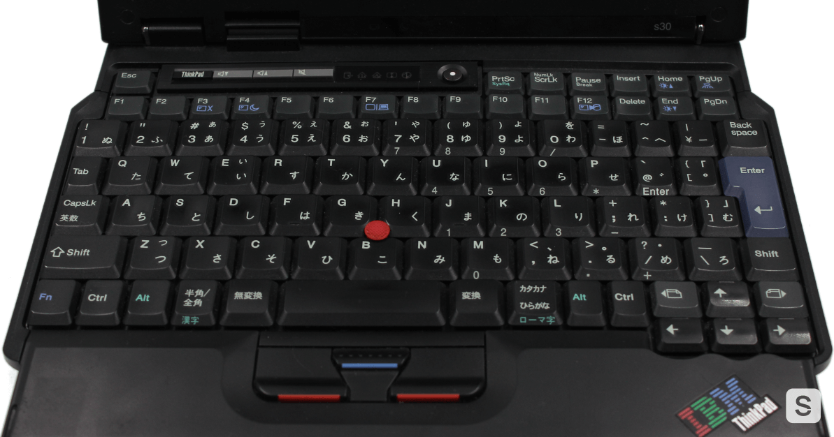 Благодаря им, инженеры-самураи IBM смогли разместить почти полноразмерную клавиатуру с легендарным удобством печати. Она и потребовала расширения корпуса. Клавиатура занимает не только всю ширину, но и почти всю глубину корпуса. При этом на ней много дополнительных кнопок для японских символов.