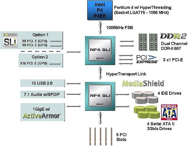 Блок-схема чипсета NVIDIA nForce 4 SLI (Intel Edition) — Источник