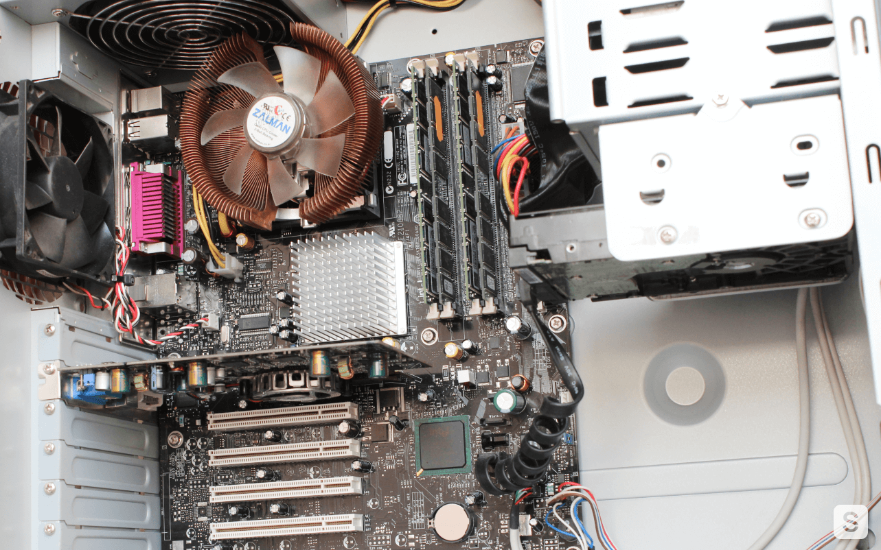 В качестве системной платы использована модель для энтузиастов Intel D875PBZ «Bonanza», интересная отсутствием встроенного звука — компьютер высшего уровня должен иметь отдельную звуковую карту. Также эта плата поддерживает разгон, в огромных пределах по мнению Intel, и очень скромный на самом деле — +4% :)