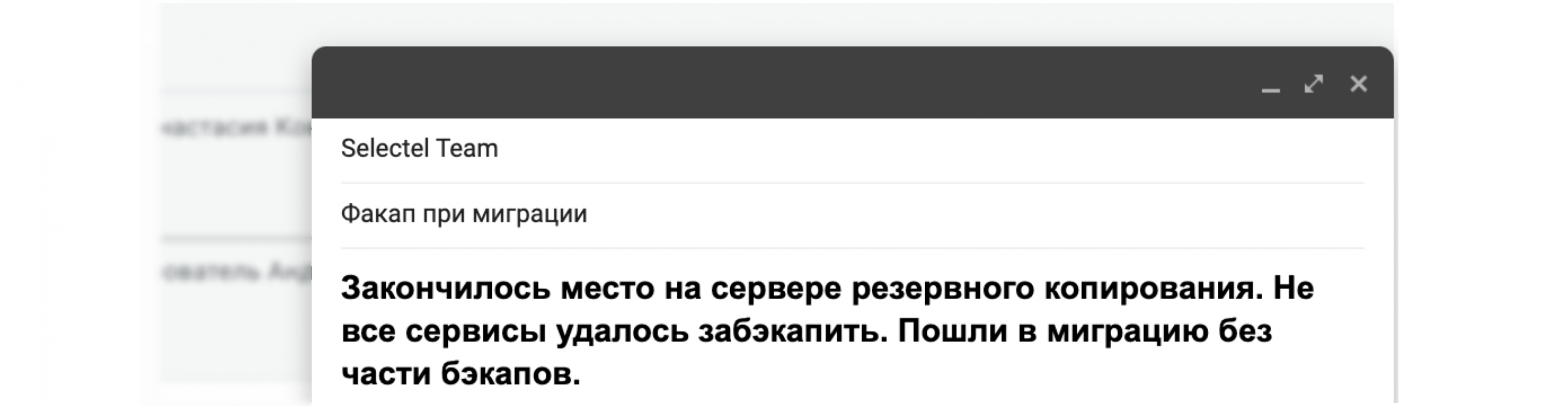 Совет: даже если вы уверены в успехе миграции без даунтаймов, лучше предупредить пользователей о возможных сбоях.