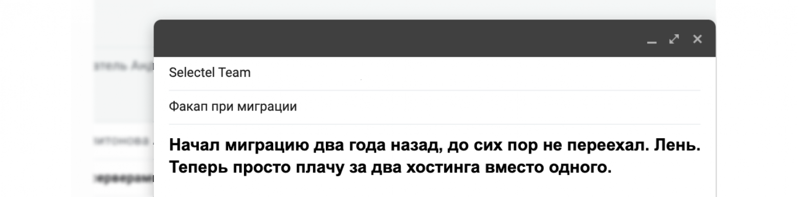 Привет! Я Виталий Прокофьев, на Хабре меня знают как исследователя истории техники, но сегодня я пишу в другой роли. В «обычной» жизни я не коллекционер старого железа, а руководитель отдела услуг администрирования (Managed Services) в Selectel. Среди прочего мы помогаем клиентам переехать в наши дата-центры или перейти с выделенных серверов в облако.