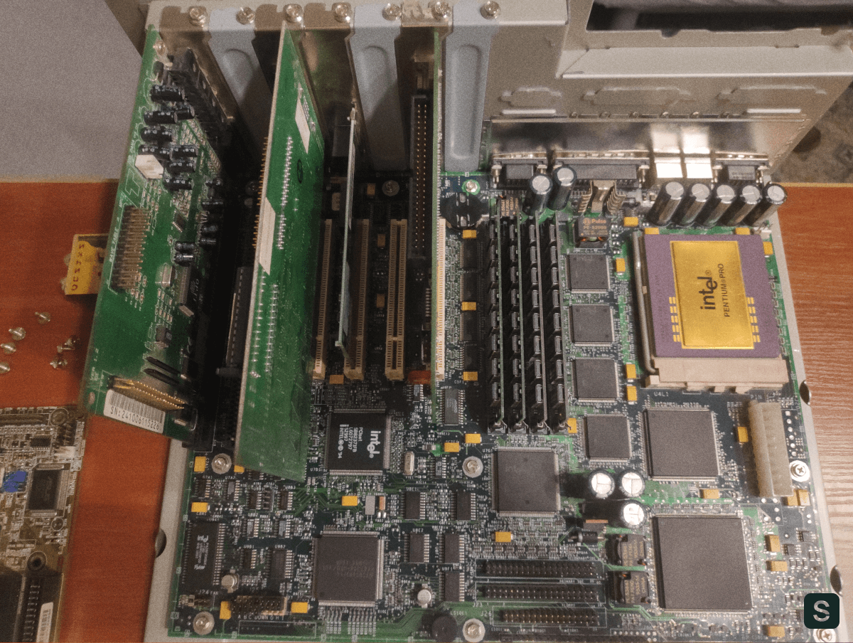 Лишь этим летом мне досталась «Венера» — плата Intel® Performance/VS «Venus», а чуть позже и ранняя «Аврора» — Intel® Performance/AU «Aurora», упомянутая ранее. На их основе собраны две машины (на радостях я придумал собственный самосбор-бренд «SERVERGHOST» в честь моего первого домашнего сервера). Оба компьютера собраны из аутентичных компонентов тех лет и укомплектованы соответствующим программным обеспечением — «притворяются» рабочим местом разработчика под Windows NT и OS/2 Warp соответственно. Также для фотосессии удалось одолжить у коллеги по увлечению редчайший Pentium® II OverDrive™.