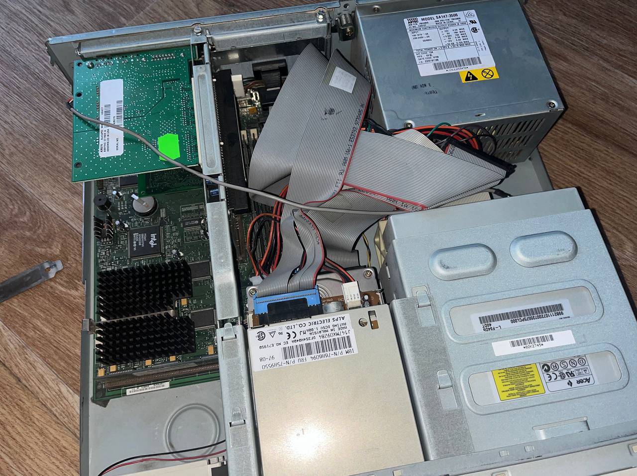 По технике тут все просто - 430VX на оригинальной плате формата LPX, пентиум-ммх 200 и пара планок памяти. Видео - встройка на чипе Cirrus Logic, видео и звук - дискретные. Отличная машинка для OS/2 Warp 4, после ЦЦ займусь установкой и настройкой)