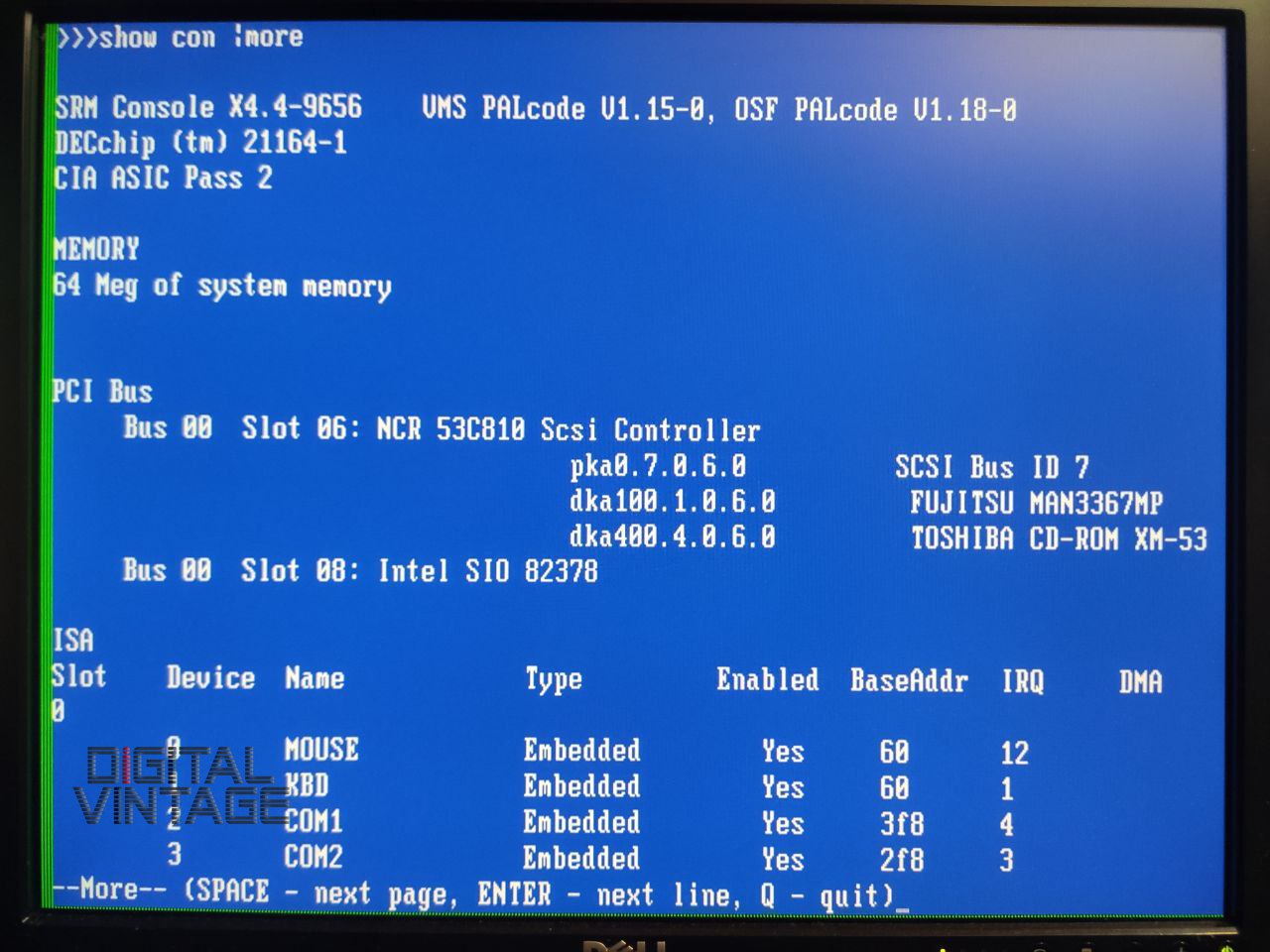 Снова позднее. Снова альфовое. Интересная история - AXPpci33 работает либо с одной либо с тремя PCI картами. С двумя - не инитит видео, причем любое, и загружается в консольном режиме.
