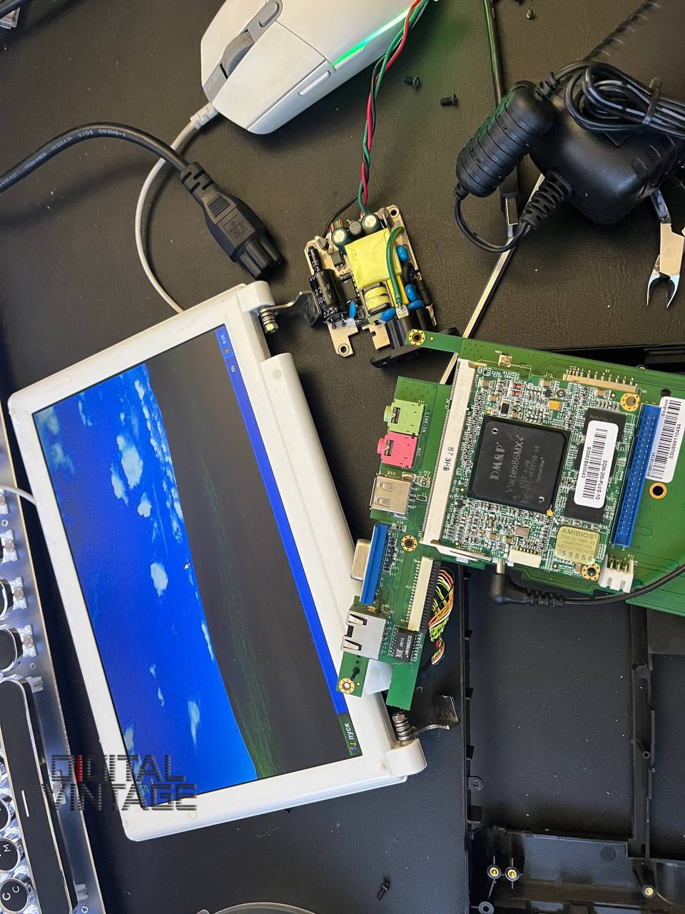 Сегодня у нас очередная попытка создать ультрадешевый и достаточно ремонтопригодный ноут - Northec Gecko EduBook родом из 2009. С виду - обычный 9" нетбук. Но на его материнке (вернее "дочерней плате", как обозначено) нет ни единого логического чипа. Вся система умещается на карточке в формате DIMM, где расположена память, система на чипе Vortex86MX на 933 МГц и звуковой кодек. Процессор - наследник Rise mP6, что-то среднее между 486 и 586 поколениями, но с полной поддержкой инструкций 586 и MMX. Памяти - целый гигабайт. Хранилище - пара SD слотов и интерфейс для PATA диска. Можно использовать любые два из них. В нашем случае стоит 16 Гбайт SD карточка.