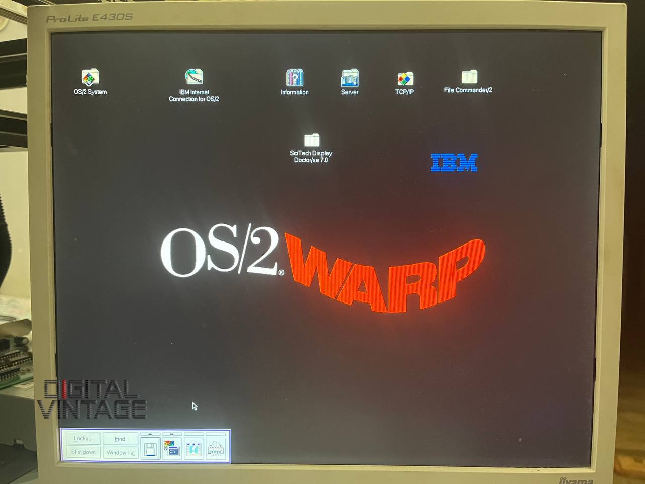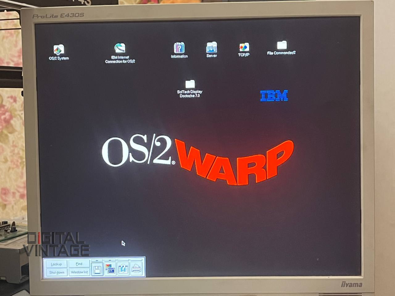 Вернемся в мир х86 техники. Перед вам чудесная рабочая станция с OS/2 Warp Adv. SMP (сама по себе очень нечастая версия этой ОС, вышедшая одновременно с Warp 4, но сохранившая старый интерфейс). Основа машины - плата Intel PR440FX "Providence", одна из самых функционально насыщенных плат под пару Pentium Pro для самостоятельной сборки. На борту у нее SCSI, сетевой интерфейс и даже звуковая карта на базе чипа Crystal.