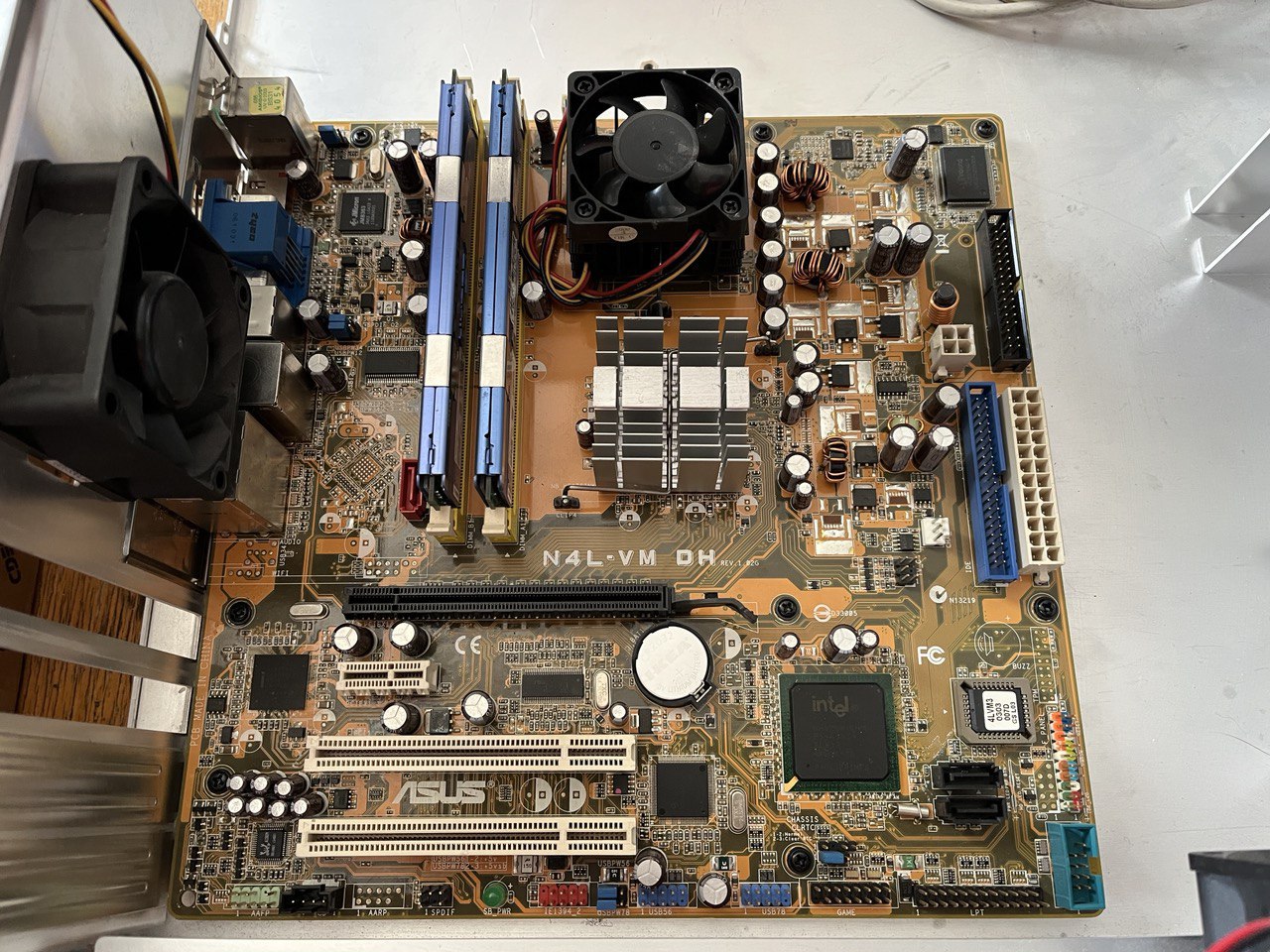 Наконец-то, добрался до сборки машины на основе Core Duo - мобильного двухъядерного чипа, холодного брата близнеца печки по имени Pentium D. Весьма нечастая плата Asus N4L-VM DH позволяет собрать настольный компьютер с таким процессором. А вот видео будет не таким уж холодным - в моих запасах пока нашлась только GeForce 8800GTS/640...