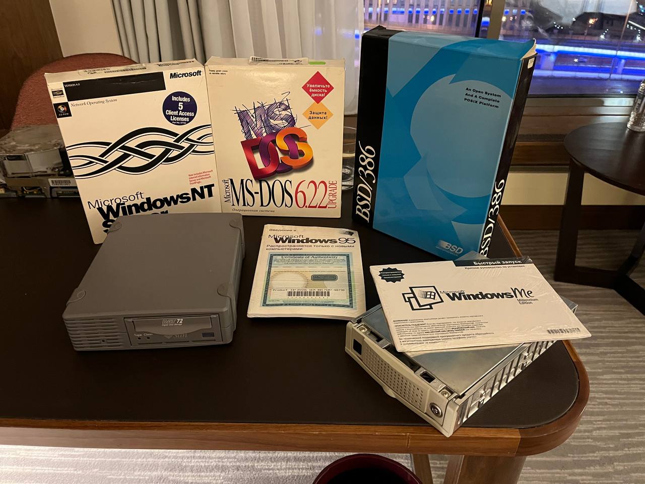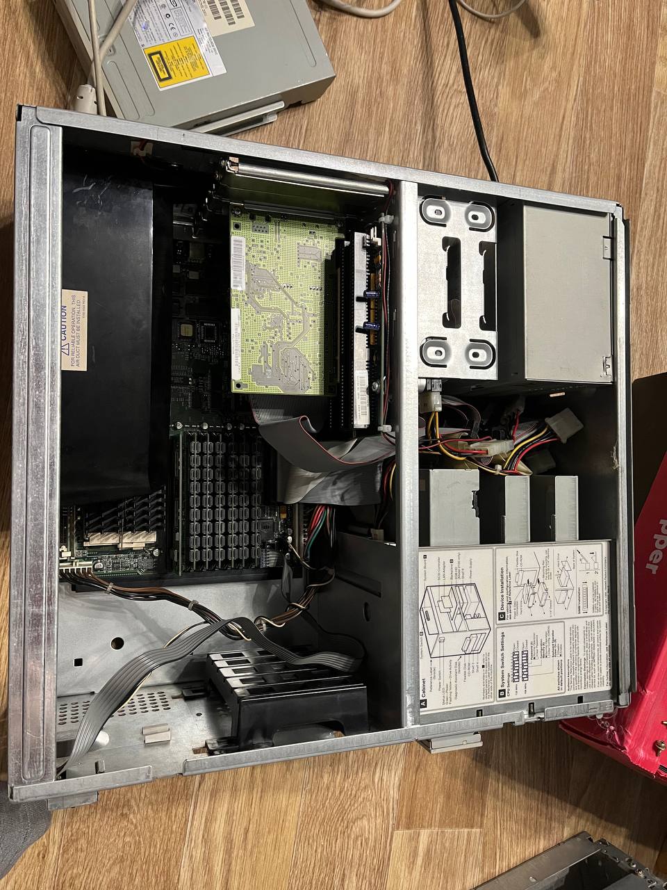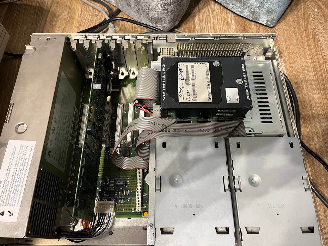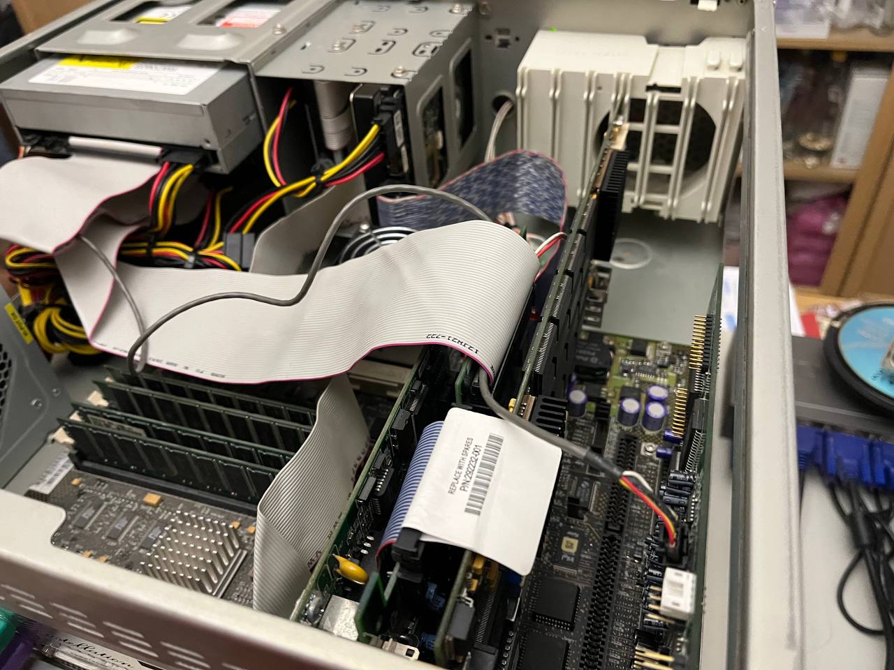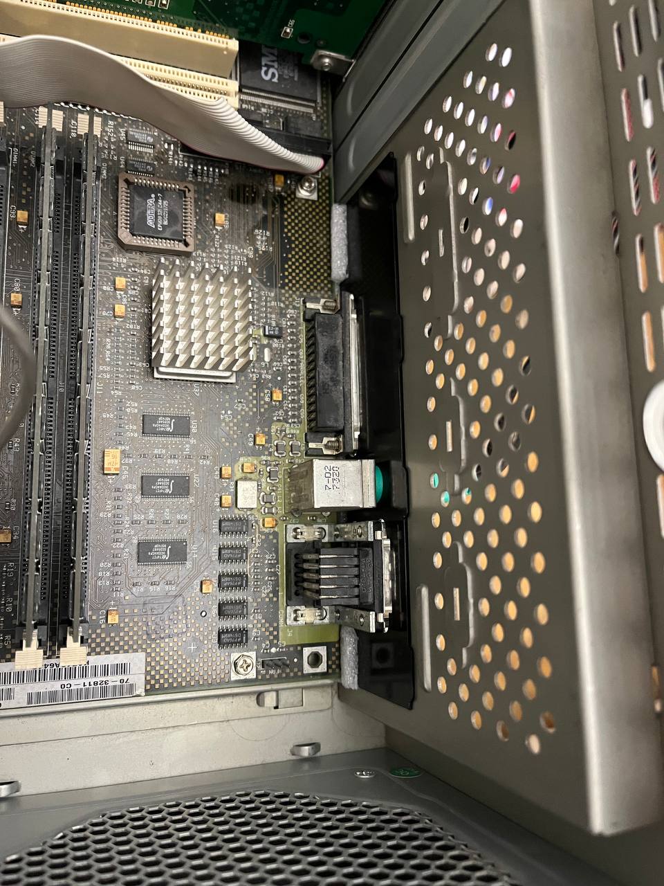 Все еще в поисках: - кулер процессора - шлейф SCSI для набортного контроллера - сдвижная дверь передней панели - перекладина с держателем хардов (подходит от IBM PC350/PC365)