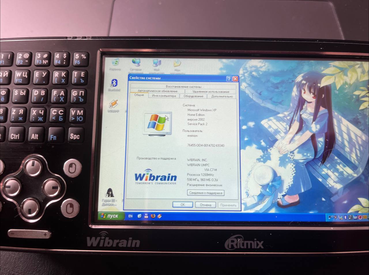 Продолжаем угорать по UMPC. Выловил вот такое чудо - Ritmix RPC-500. На самом деле это чистокровный кореец Wibrain - от ритмикса здесь только логотип и наклейка с серийником под батарейкой. Лого Вайбрейна даже убирать не стали) И, пожалуй, правильно - в модельном ряду Ритмикса эта машинка выделялась качеством и оригинальностью. Позиционировалась она, кстати, как мультимедийный плеер...