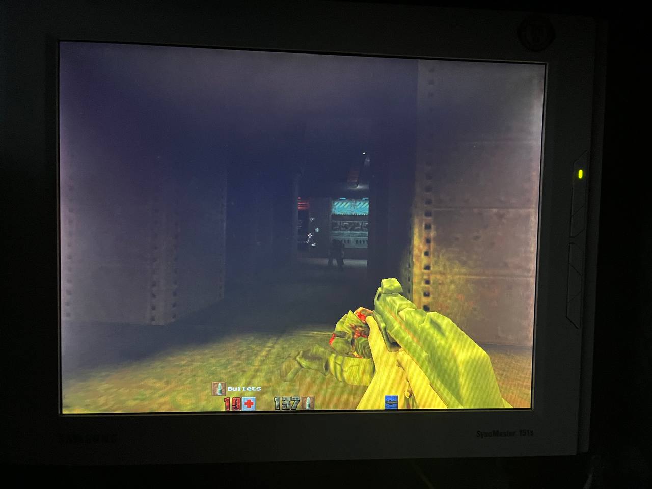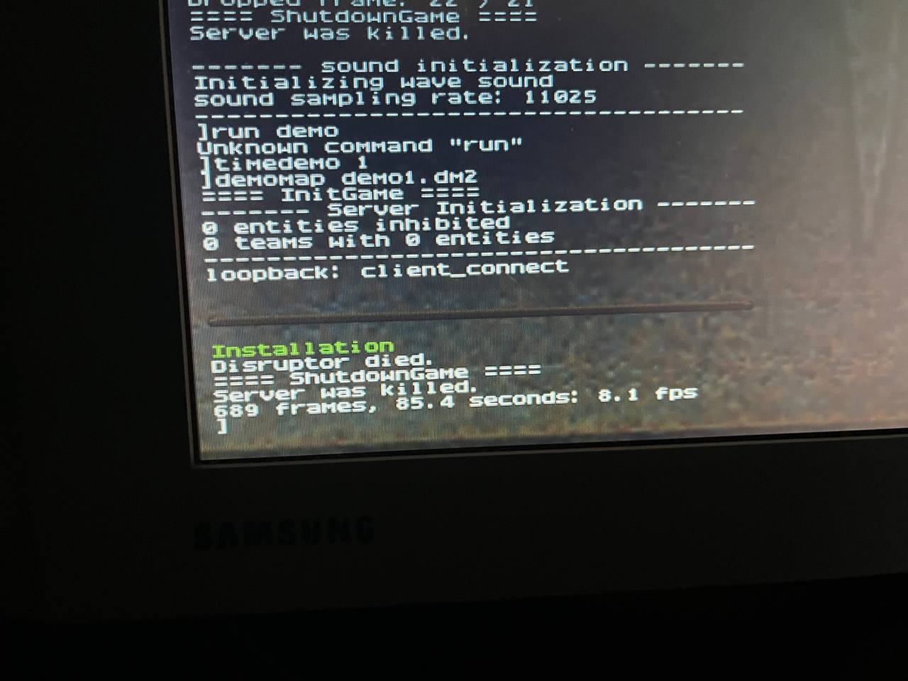 Причина - от старости припой стал хрупковат, а плата очень длинная. Где-то что-то отошло. Прогрев помог - няша снова жива и весела. Ставим Quake II :)