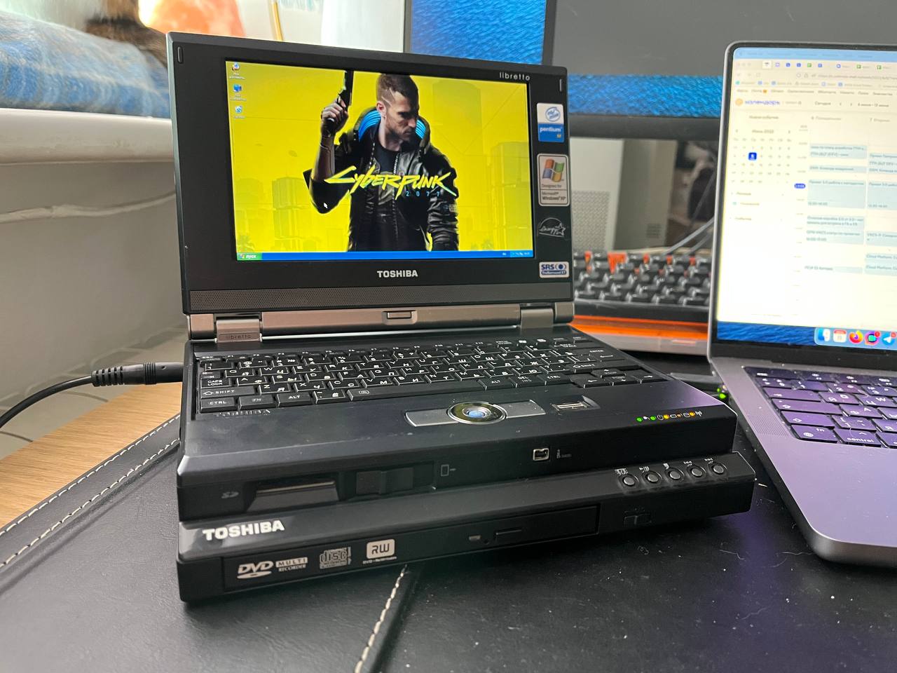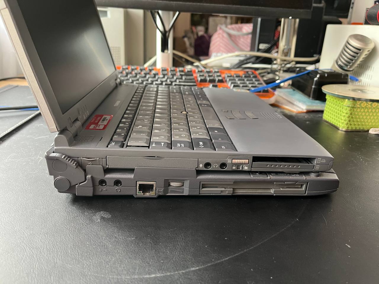 Машина - практически ультрабук 1999 года. Тоненькая, легкая, но на удивление расширяемая. Идеологически похожа на ThinkPad 570, но пожалуй, даже продуманнее его. В те годы Тошиба действительно могла!