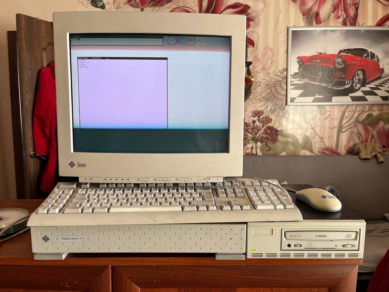 Что в итоге? Sun Sparcstation 1+ (20 МГц, процессор произведен LSI, сопроцессор - WEITEK) 32 МБайт памяти (было 40, но 8х1 как-то не в тему тут) 540 Мбайт - сказевый жесткий диск Объем видеопамяти не указан, но карта умеет в 3D (свое собственное, SGI опубликует OpenGL через только через пару лет) и поддерживает разрешение 1152х900 при 24 битном цвете - это уже минимум 3 Мбайта. Сама карта - по размеру 2/3 от материнки, да еще и в два слоя. Одних только больших PGA чипов там 10 штук! Ее фото я уже постил. На борту - звук, сеть и дисковод. CD-ROM внешний, не фирменный, конечно. Клавомышка и монитор - оригинал, но уже от более поздних машин. Операционная система - SunOS 4.1.2. Это еще не Солярис, ребрендинг произошел позже. В комплекте удивительные пляски с геометрией скази-харда (когда прошел через это - понимаешь, что все было просто), старый добрый SunView в роли основного интерфейса (на самом деле нет - основная здесь консоль - хочешь графику, запусти ручками или добавь в скрипт). И сырая еще OpenWindows - пока я не смог ее запустить. Возможно дело в видеокарте, но это очень не точно. Что касается сети - есть telnet, ftp и nfs. А вот веб-браузера еще нет - и не удивительно. Веб изобрели в год анонса машины, а первый браузер появился в 1991... Тем не менее, данные на машину загрузить можно, остается только найти какой-нибудь софт для нее и попробовать погрузиться в эпоху. Пока нашел только мелкие игрушки из поставки ОС и тестилку графики (и всего железа за одно). Наслаждайтесь!)