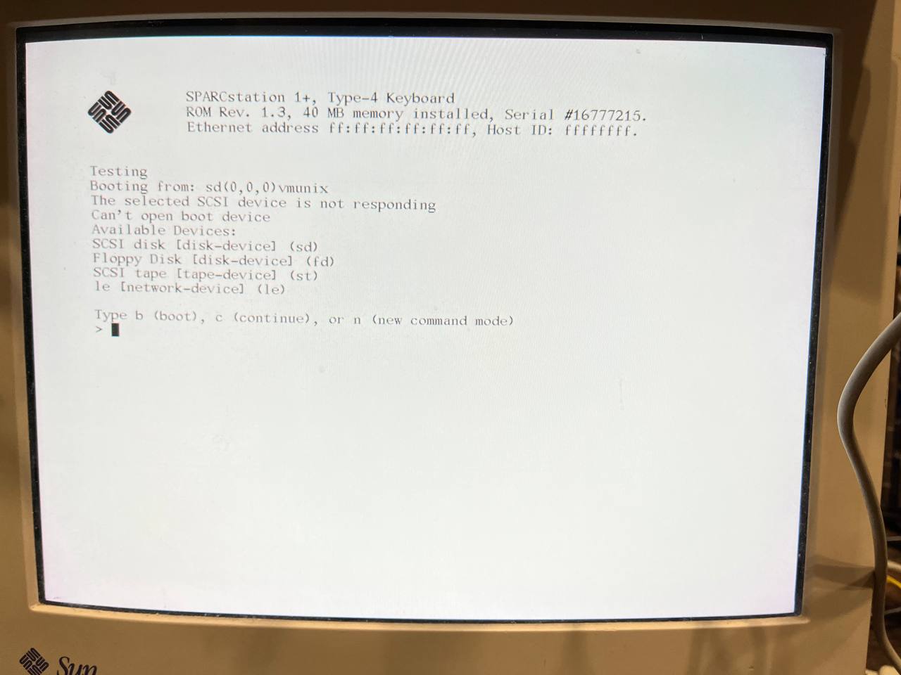 1990 год! Sparcstation 1+ 25 МГц и 40(!) Мбайт памяти