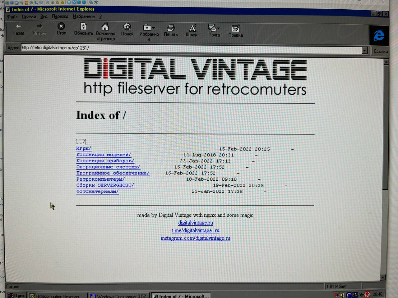 А вот это не совсем про ретро железо, но может облегчить жизнь многим, кто любит с ним возиться. Подключиться со старой операционке к сетевой папке может оказаться довольно сложной задачей и универсального решения для всех систем нет. А вот браузер хотя бы зачаточном виде есть почти везде. Запилил простейший хттп-файлосервер из нджинкс, палок и другой магической субстанции. Умеет отдавать имена файлов в UTF-8, KOI8-R и Win-1251 - ибо не всякий браузер умеет поддерживать все. Живет в контейнере, слушает 80 порт. Для работы достаточно подмонтировать папку с данными в /data.