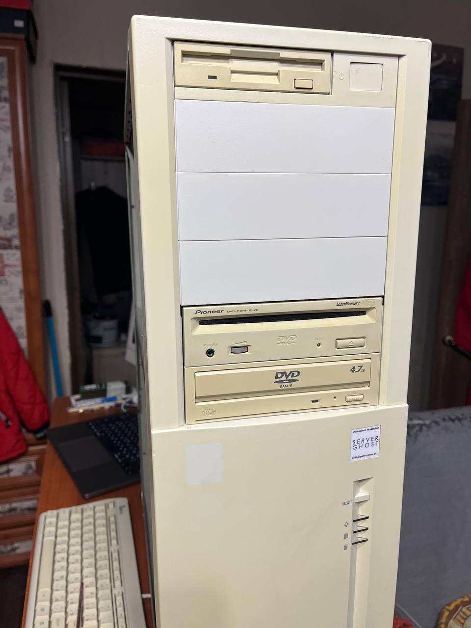 Конфиг: 2хXeon 2.0/2 GB RDRAM/36GB SCSI HDD/Quadro 4 980XGL И да, здесь еще два забавных ДВД привода - один слотовый, а другой DVD-RAM, он умеет работать с дисками в картриджах.