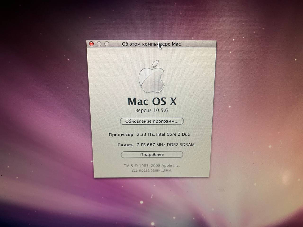 Внутри представленного экземпляра: Core 2 Duo T8100 3 Гбайт ОЗУ 120 Гбайт жесткий диск Экран 13" 1280х800