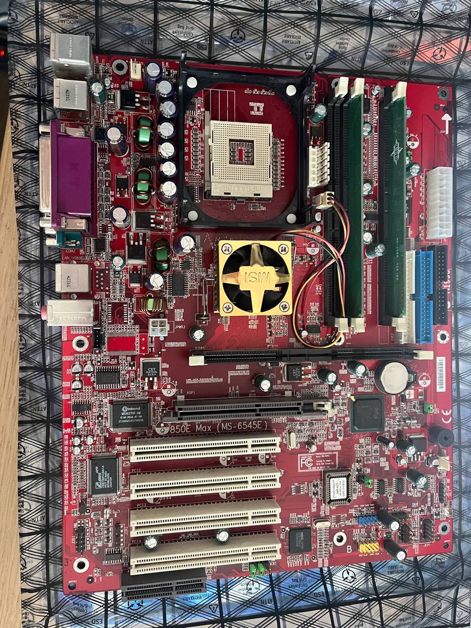 Что-то я давно не постил) Но вот в руки попала забавная железка (куча более интересных ждут очереди и времени, но эта не требует особых исследований)! Просто материнка для Pentium 4, но довольно весело сделанная: - чипсет Intel 850E - RIMM память и 533 шина - посмотрите на расположение слотов памяти - причем «лишний» слот, это «первый»… - тут уже даже USB 2.0 завезли и звук 5.1 с аппаратным контроллером - а сеть - нет(((