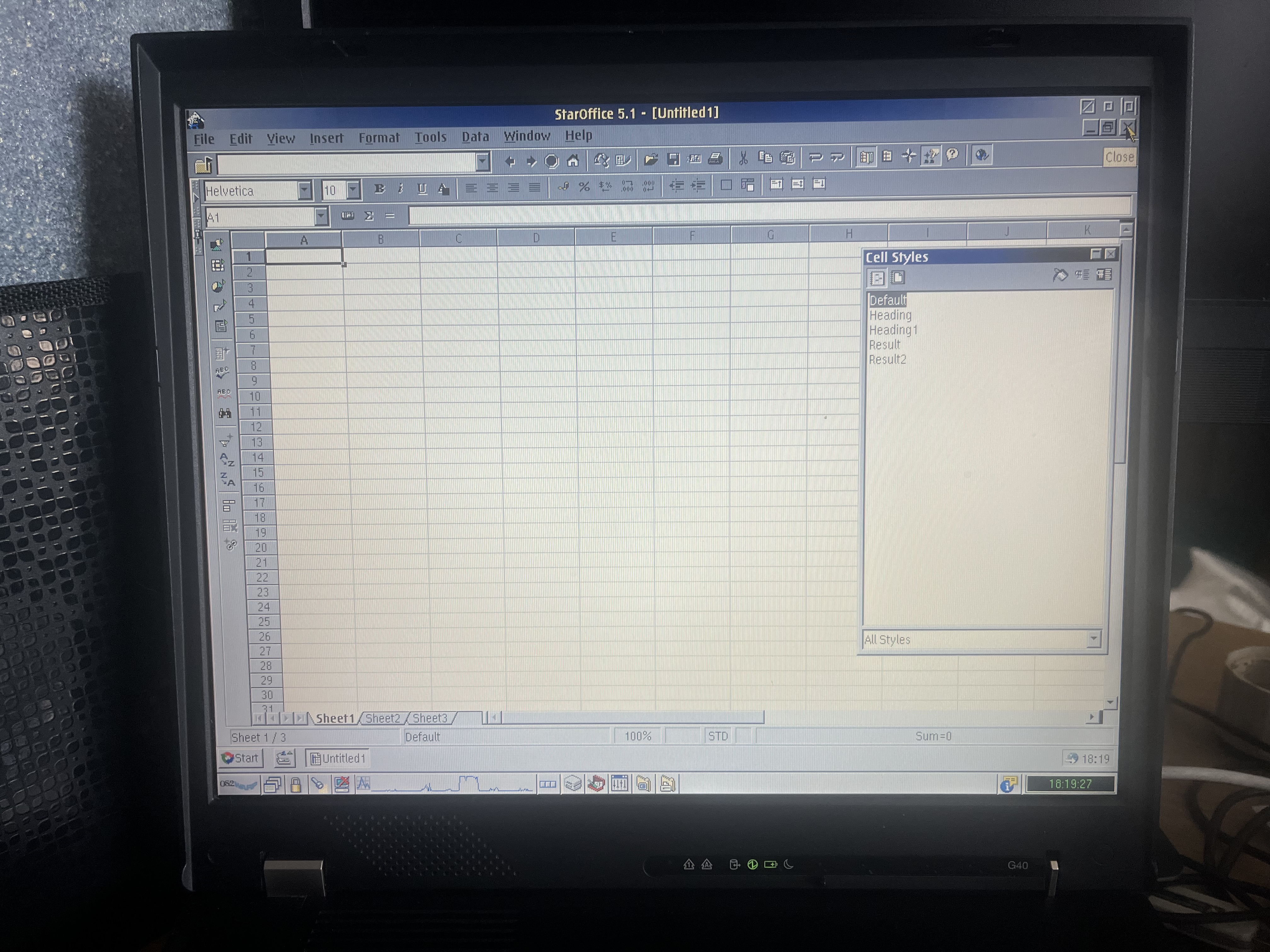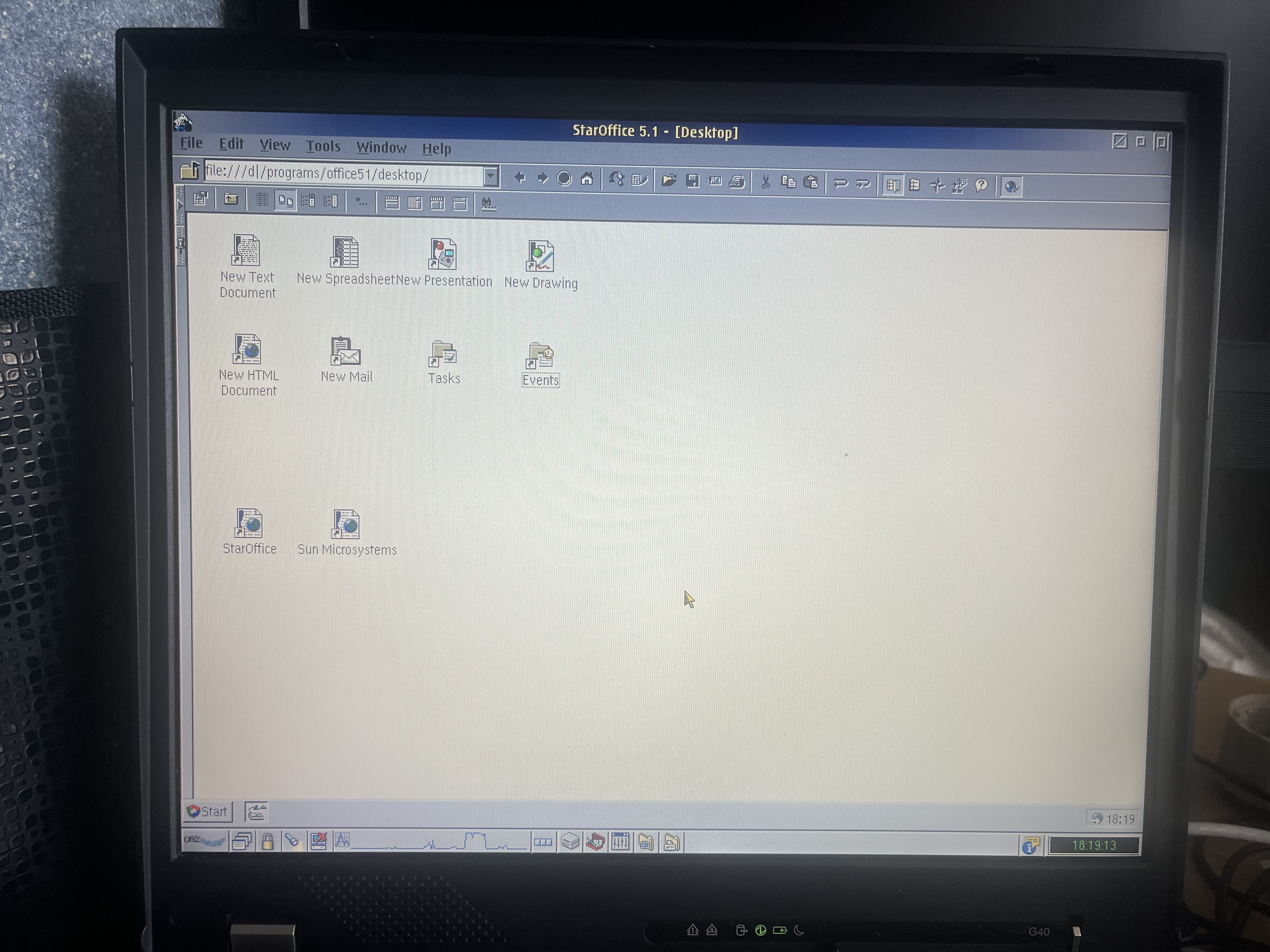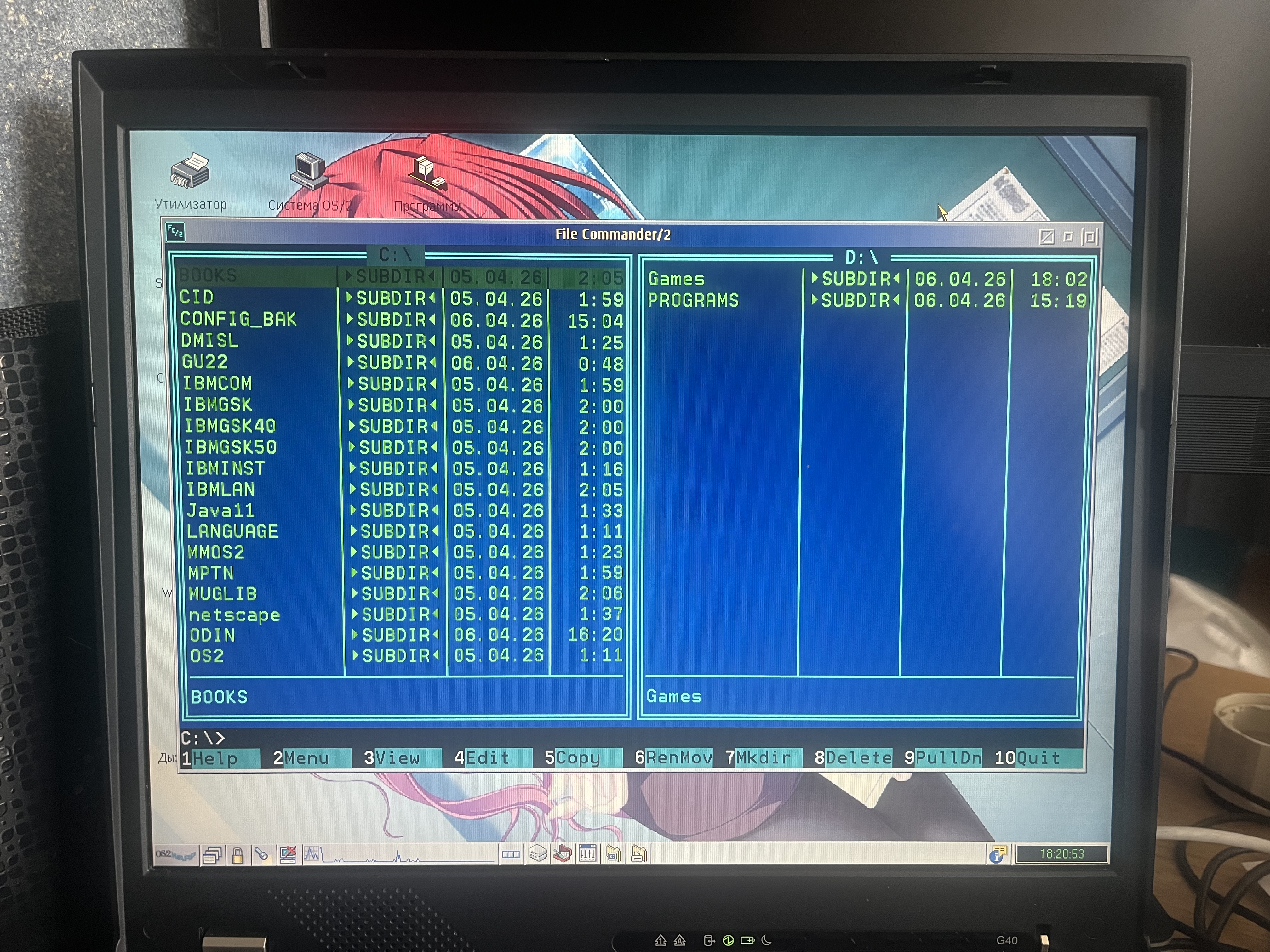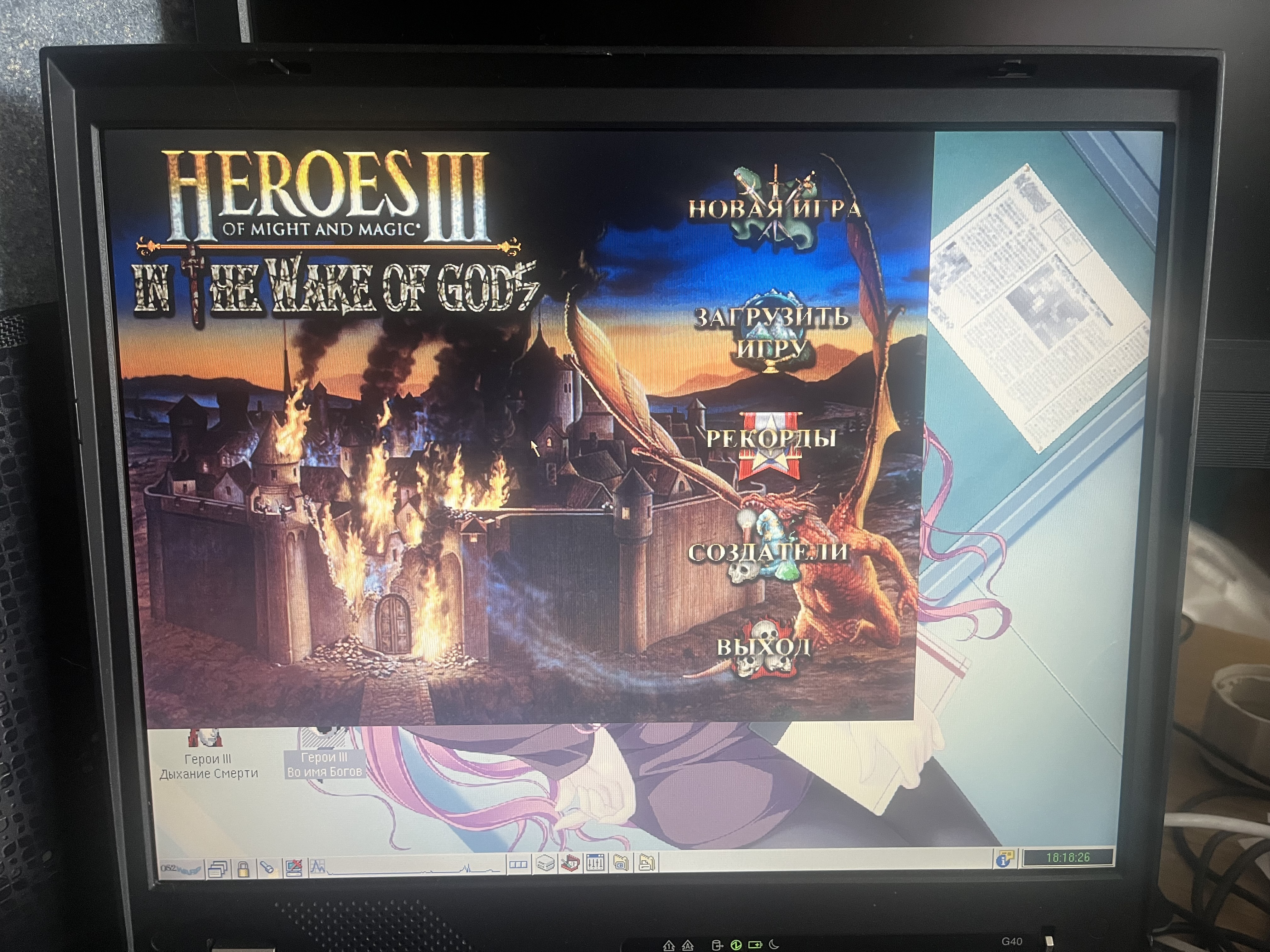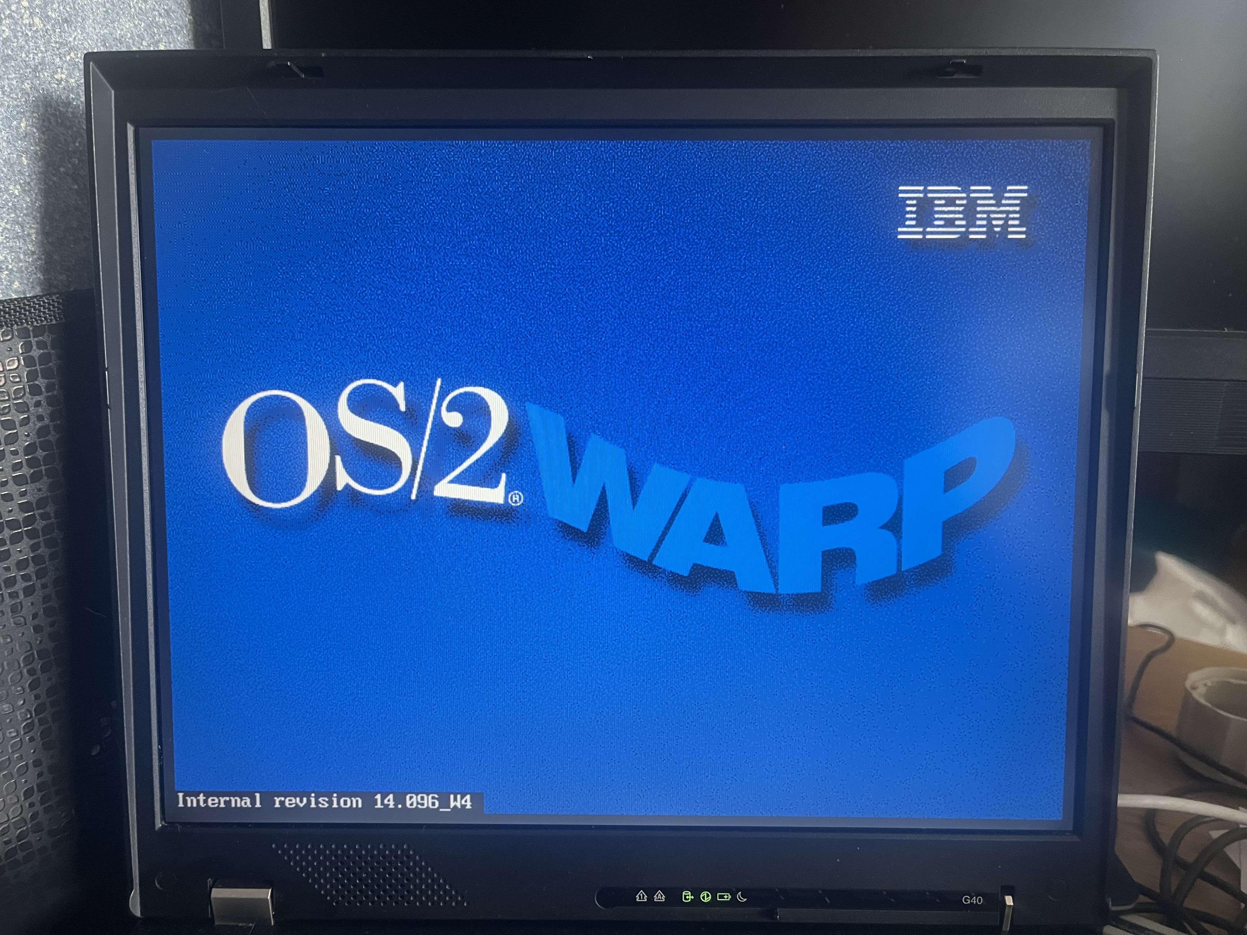 It took a fair bit of fiddling around, remembering how to configure OS/2, and here it is – the machine is ready! You recently saw the ThinkPad G41, and this is its predecessor, the G40, and it has a 3.5" floppy disk drive! And just like the G41, it has an autonomous heater. The Pentium 4 system, but from the previous generation – Northwood, is a pure desktop processor, not something in between. It has 2400 MHz, maximum 3000, without Hyper-Threading. The bus is 400 MHz. The chipset is an intermediate Intel 852GM. Integrated video, a 15" XGA screen – all pretty standard for inexpensive desktop notebooks. The only unusual thing is that it's an IBM ThinkPad...