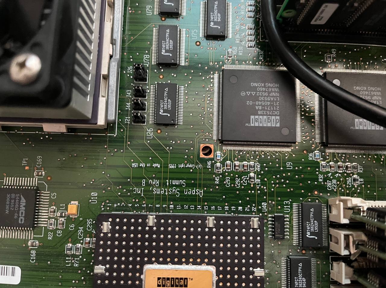 Кто сказал, что самосборный ПК это только х86? Вы уже видели Альфу (вернее целых 4) в корпусах АТ и АТХ, а теперь через Сантехники! Встречайте, Sun SPARCengine Ultra AXi. Материнка для сборки собственной "ну почти Ультра5". UltraSPARC IIi на 300 МГц, 8 слотов для памяти типа DIMM EDO и 6 PCI слотов. Внезапно, есть выкидыш на пару PS/2 и в комплекте идет заглушка на панель портов! А вот со слотом UPA для производительной видеокарты (например, Creator3D) авторы немного просчитались. На 3-4 мм... Карта не встает в корпус. Насколько знаю, это исправили в одной из последующих ревизий. А пока - ставим TechSource Raptor на чипе 3DLabs Permedia 2, специально сделанную для сантехнического применения. На этом пока все - доукомплектовка и тесты в следующем посте!