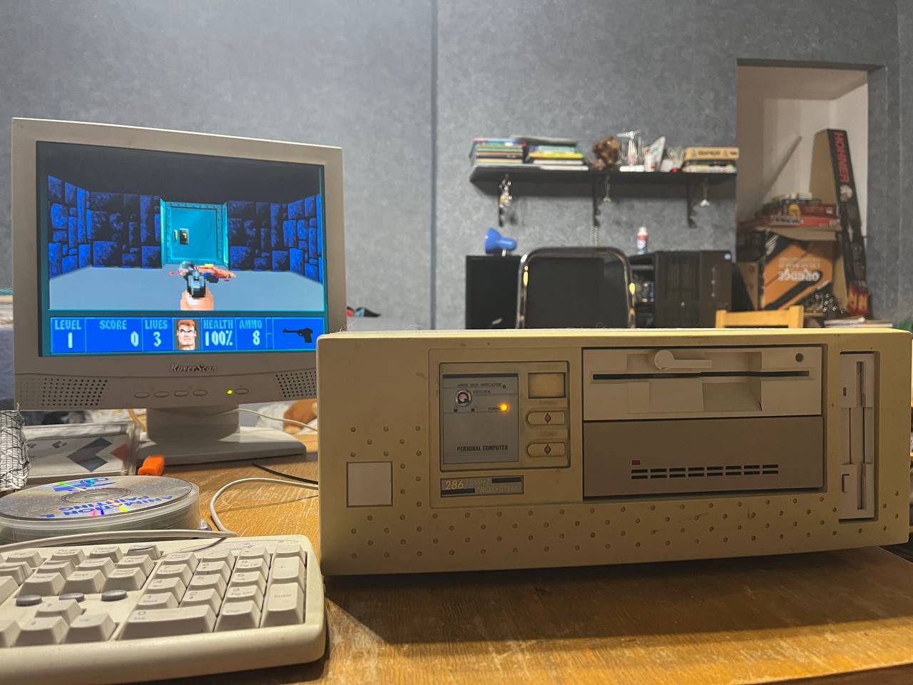 Выменял у коллеги и привел в порядок вот такой занятный 286) 1991 год. Классный компактный корпус, очень похожий по стилю на Inwin. Процессор производства Siemens на 16 МГц, 4 Мбайт памяти, на борту IDE и MultiIO. Стояли "косые" флопы и Disk-on-Module. Поставил сопроцессор от Intel, хард на 42 Мбайт вместо DoM, аутентичную сетевуху. Хотел еще заменить Trident на ATi, но материнка с ней капризничает и не всегда стартует. А так - чудесная маленькая машинка)