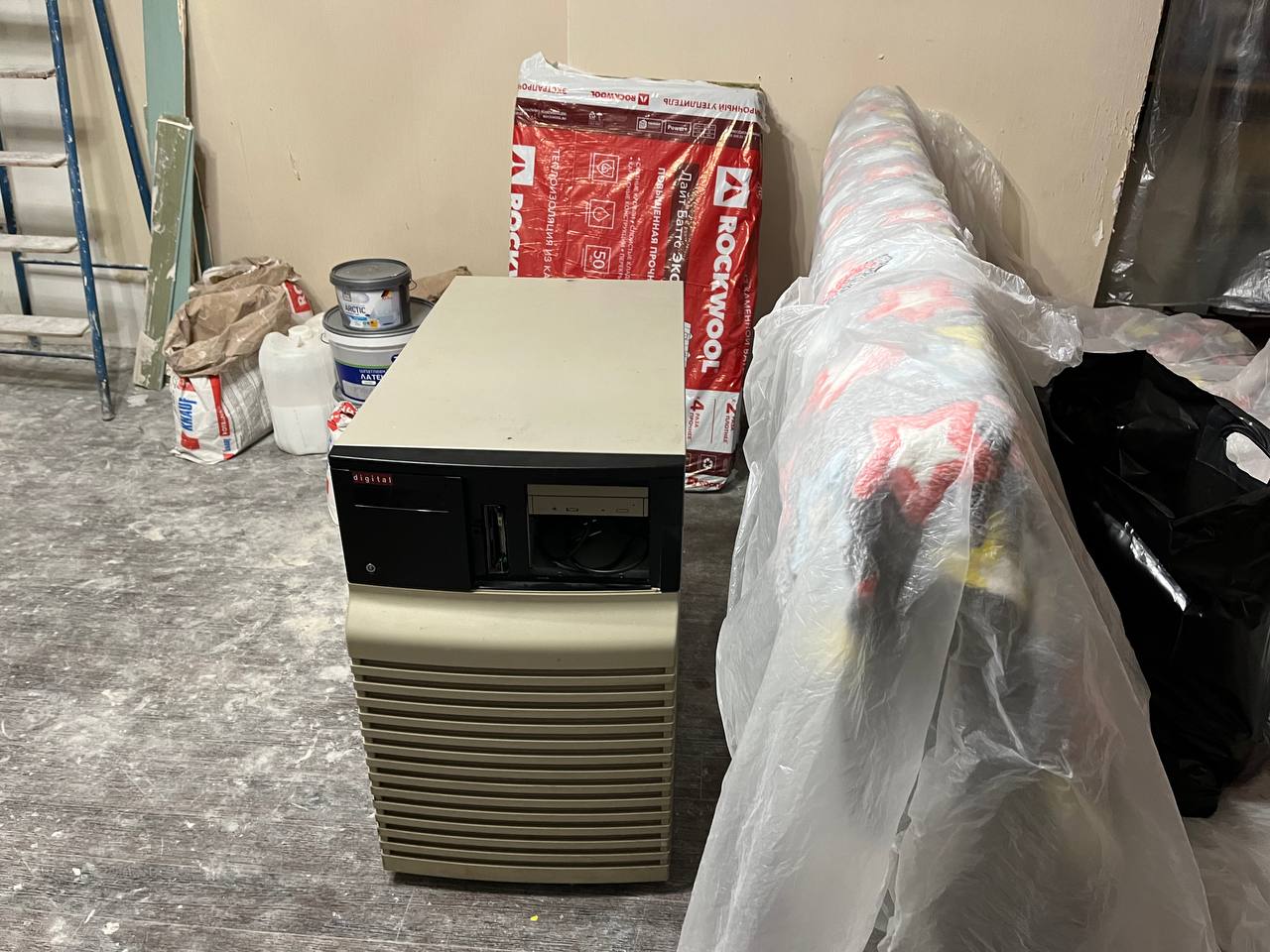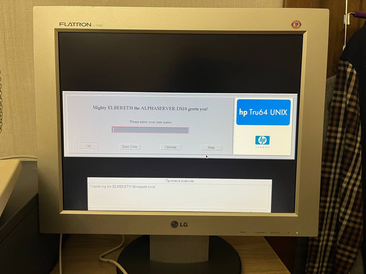 Ремонт подходит к завершению, потихоньку подключаю постоянно используемые ретро-машины. Первой из них стала моя первая Альфа - Compaq AlphaServer DS10 по шильдику, AlphaStation DS10 (не XP900, заметьте) в душе. Помимо процессора Alpha 21264 (EV67) на 618 МГц с 2 Мбайт кэша второго уровня и двух гигабайт оперативной памяти, здесь есть видеокарта (серверы отличались отсутствием звука и видео) Elsa GLoria Synergy (Permedia 2 8MB, оригинальная карта от AlphaStation) и звуковая карта Ensoniq AudioPCI 1373. Работает это чудо под Tru64 Unix 5.1B. Возможно вы помните эту машину - она была главной героиней третьей части цикла про Альфу (https://habr.com/ru/company/selectel/blog/579564/)