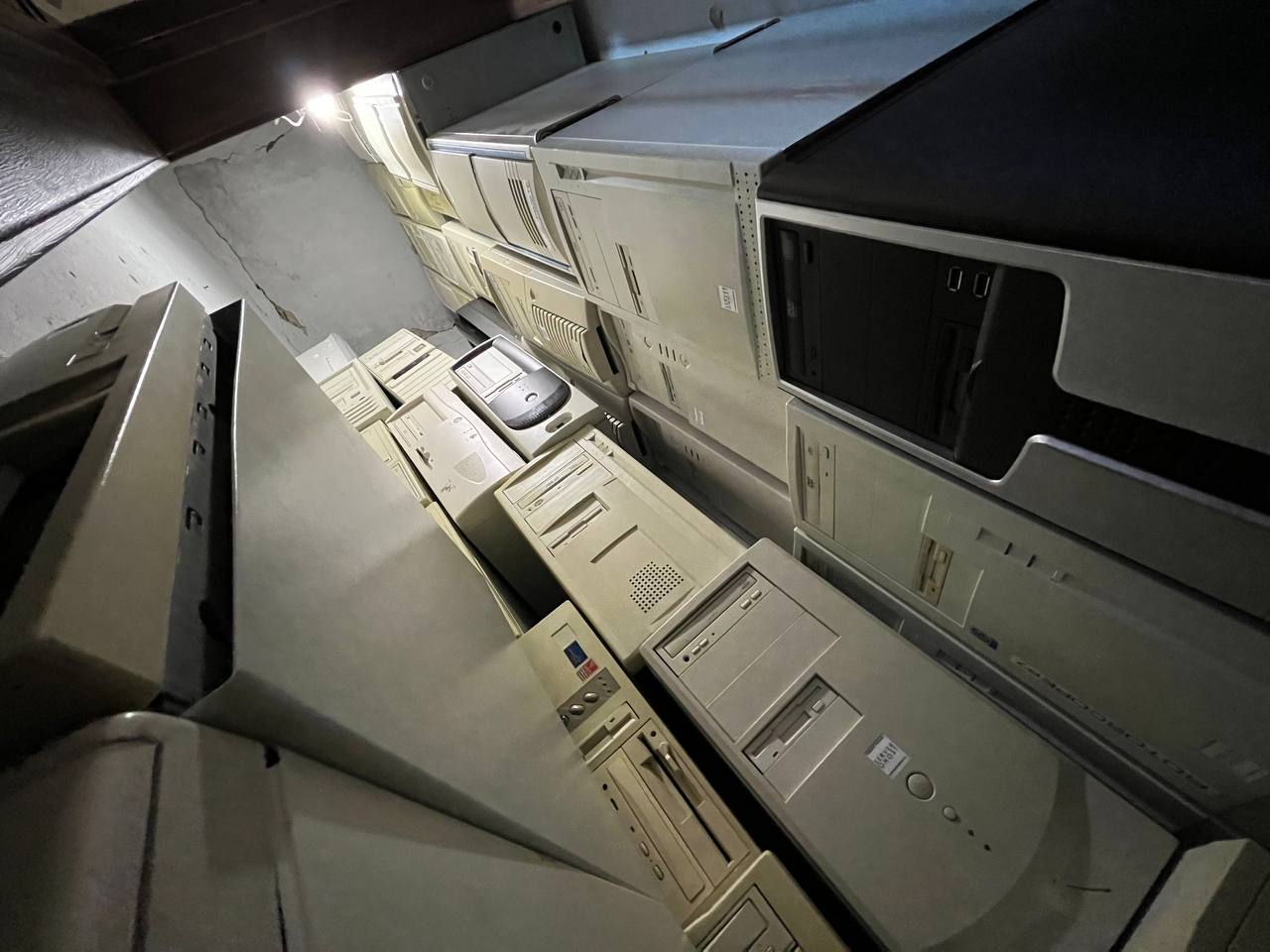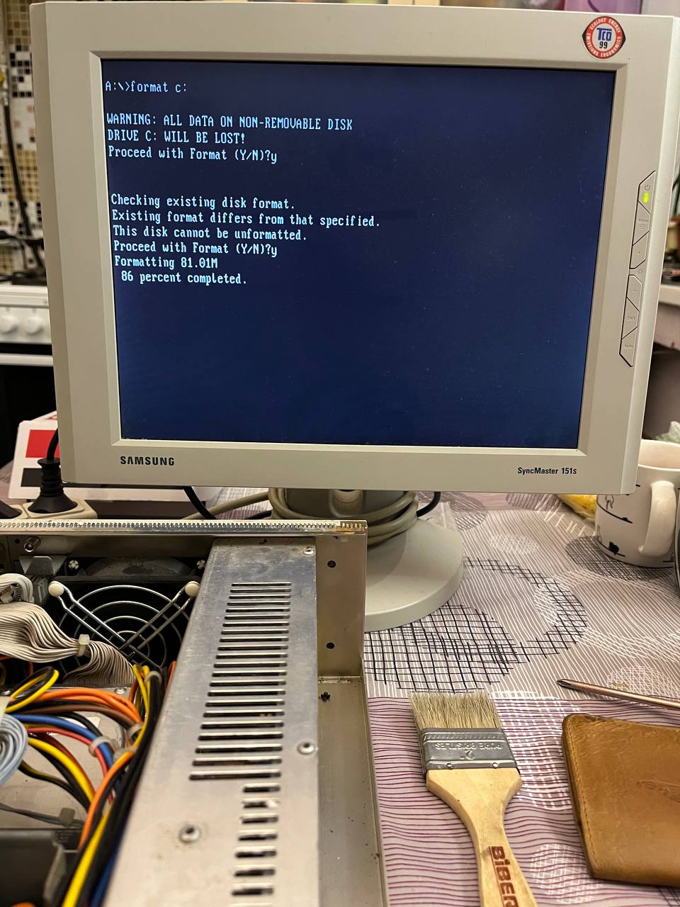 И вот, наконец, рабочий сетап готов. Ретростенд с наиболее часто нужными машинами и основное рабочее место теперь объединены. Выглядит эпично/хтонично/адово (выберите кому что больше нравится).