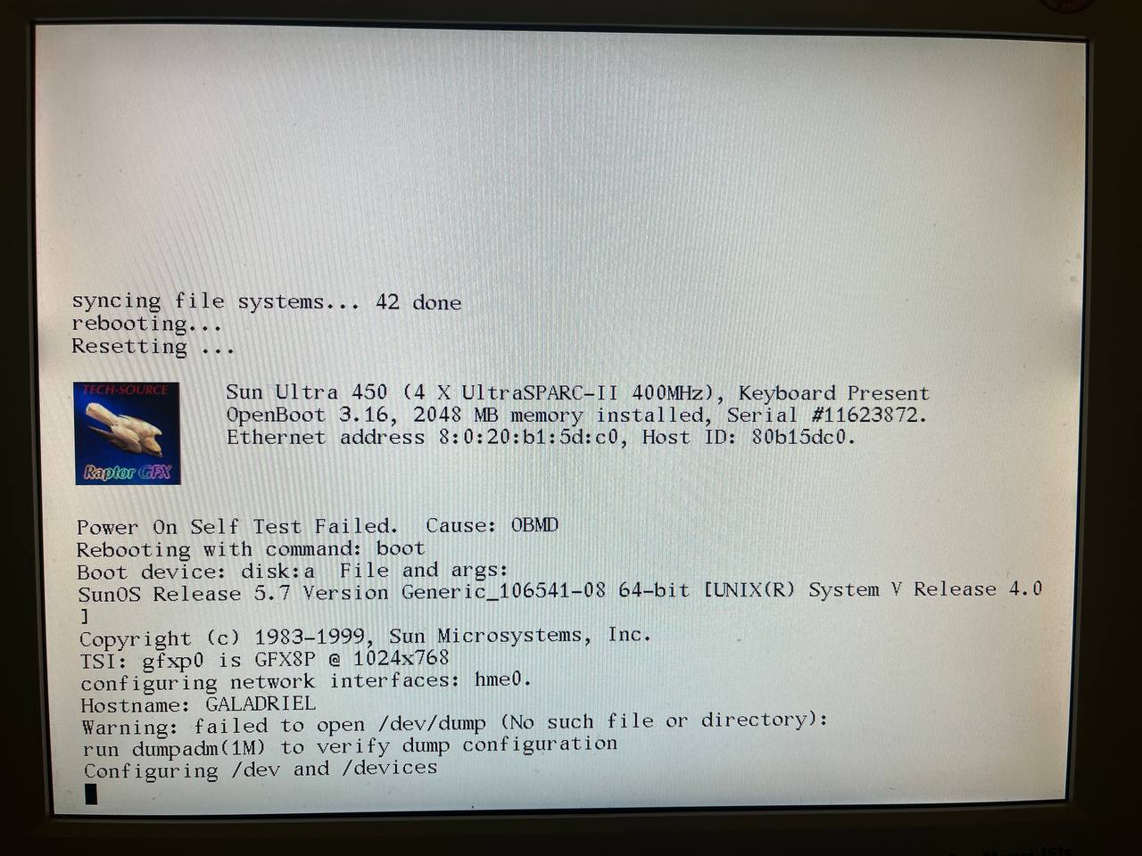 "Подстольная тумбочка" обрела сетевое имя и операционную систему - Sun Solaris 7. Немного фото свежеустановленной ОС для вас)