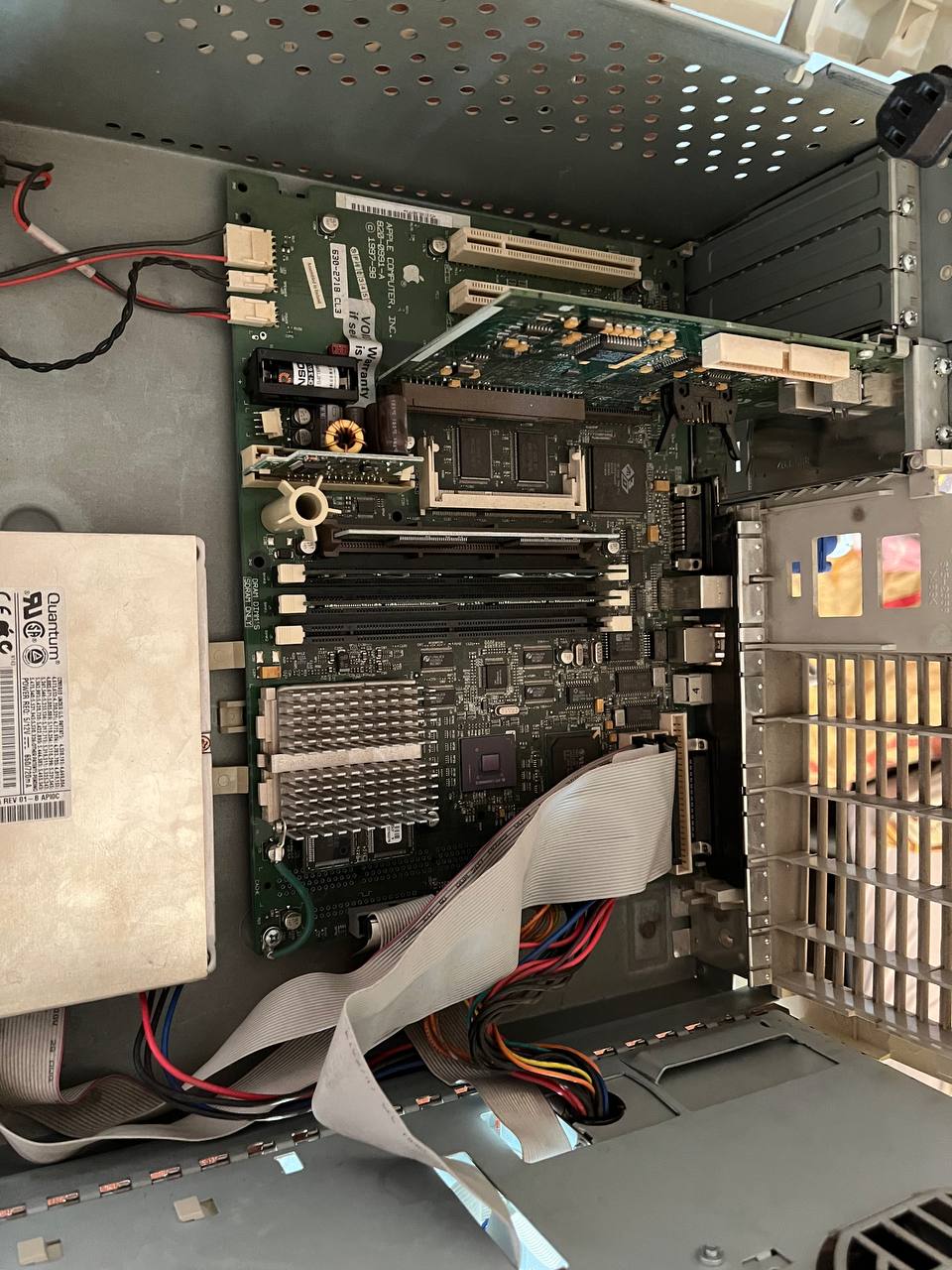Главное, пожалуй, двухпроцессорная мать для Pentium Pro - Intel B440FX. Пока не сумел завести ее, она хочет хитрую память - Buffered EDO DIMM (возможно подойдёт от старых маков), но главное - я пока не понял, как же ее запустить без родного корпуса…