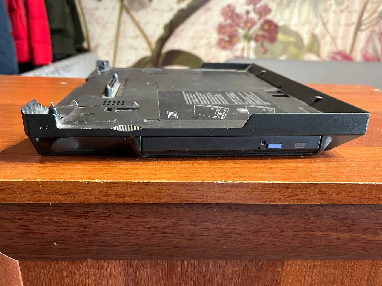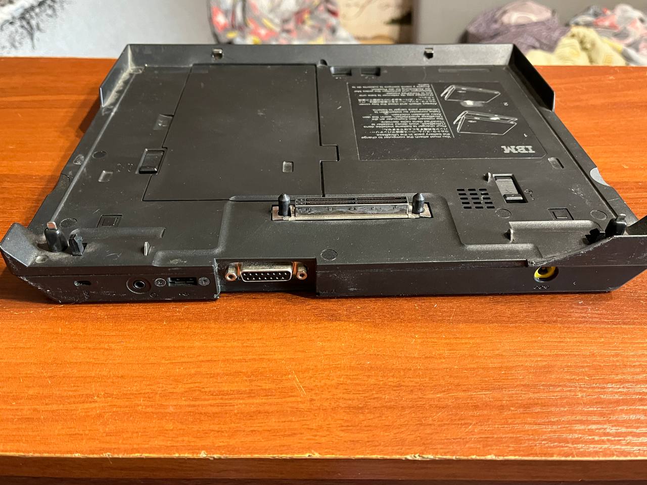 Вот и близкий по духу к предыдущему герою аппарат - IBM ThinkPad 570E. Одношпиндельник с продвинутым доком. В доке так же флоппик, двд 📀 читалка, колонки и немного портов. При этом нету сетевой карты - ни в ноуте, ни в доке. Зато док выглядит монолитнее, когда прикреплён к ноуту, а ещё в него можно поставить батарейку. Вместо флоппи, но не в его отсек - хитрость видно на фото.