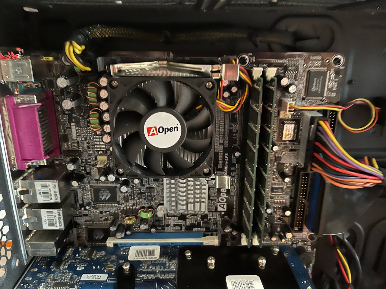 Pentium M 755 2.0 ГГц 2 Мбайт L2 Aopen i855GMEm-LFS 2 Гбайт памяти BFG GeForce 7800GS 256 Мбайт Audigy 2ZS 2x36 Гбайт WD Raptor SATA 250 Гбайт WD Caviar IDE И все это в не очень периодном по факту, но отлично подходящем по духу корпусе)