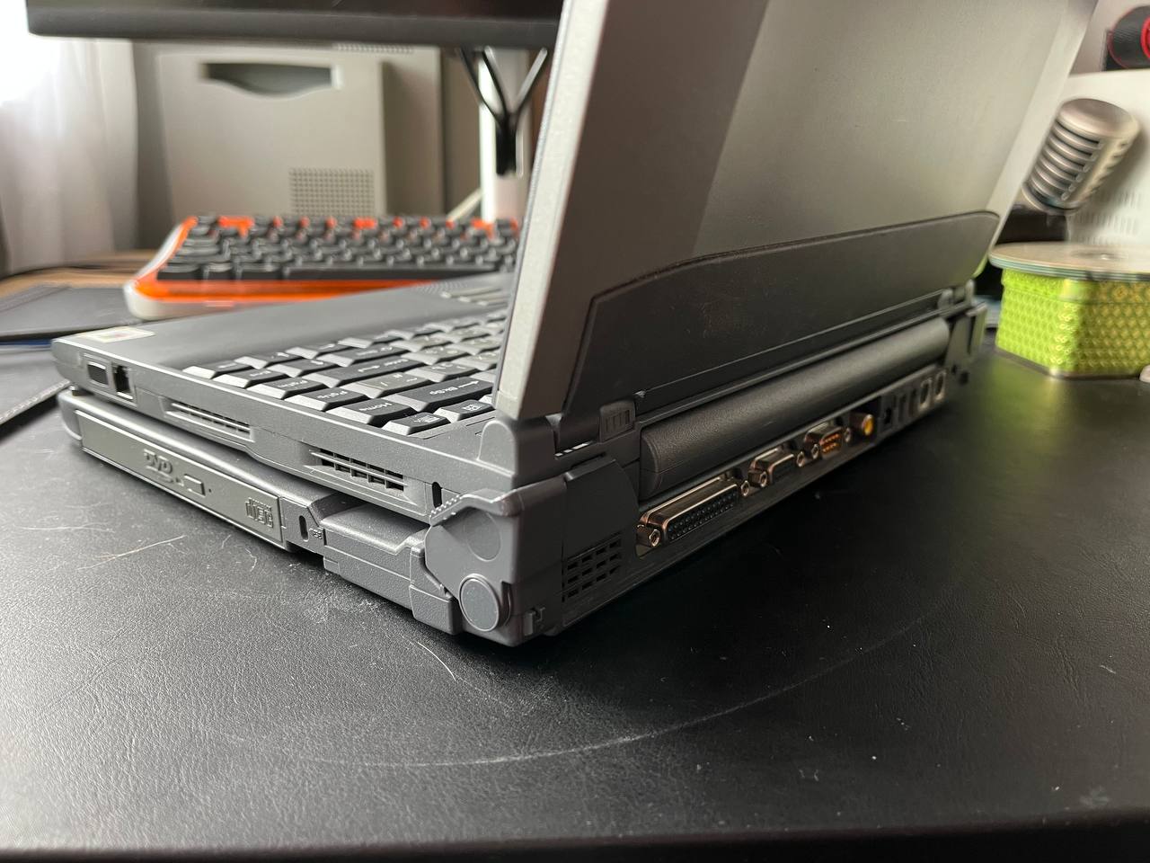 Машина - практически ультрабук 1999 года. Тоненькая, легкая, но на удивление расширяемая. Идеологически похожа на ThinkPad 570, но пожалуй, даже продуманнее его. В те годы Тошиба действительно могла!