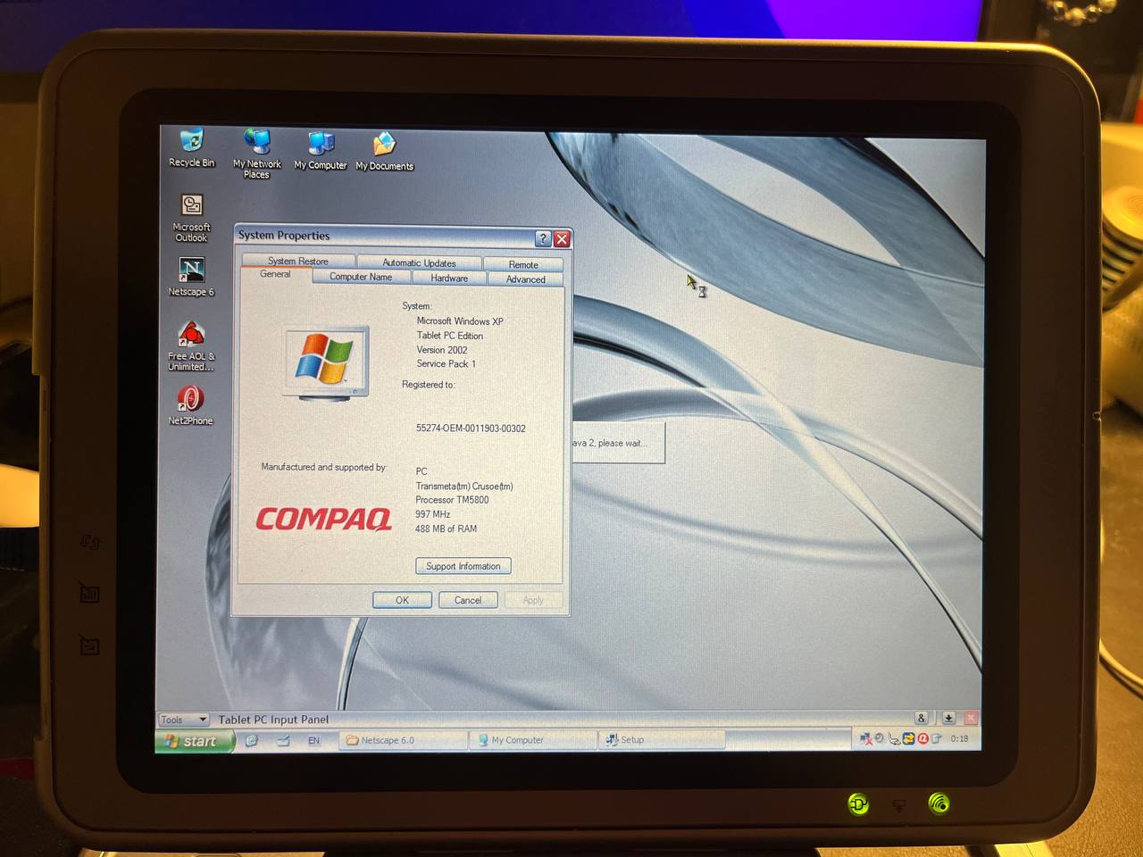 С Компаком получилось намного проще, чем с Сонькой. Нашёл на архив.орг диск восстановления, вставил привод от армады в док и восстановил родную систему - WinXP Tablet PC Edition. Тут же накатил софт - тут его тоже немного нужно. Останется только героев залить - надеюсь, они будут тут бодро работать!