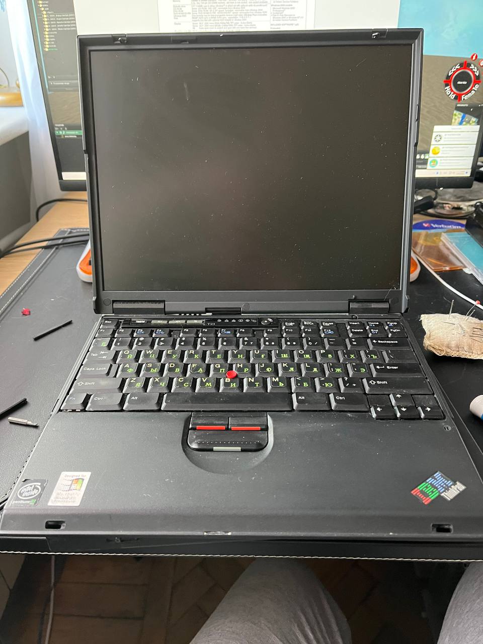 А еще Лимовский подогнал донора для T20. Теперь моя двадцатка выглядит прилично и не болтается. К тому же, оказалось, что у меня еще есть Т23 в одной из младших комплектаций есть - с 866 МГц туалатином) Ему тоже досталось бонусов от трупа - он получил новую рамку дисплея.