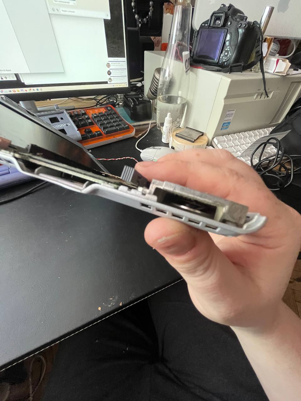 В мои руки попала только тушка, благо хоть и потёртая, но в неплохом состоянии и полностью рабочая. С БП пришлось знатно извратиться, и видимо что-то подобное предстоит с системой загружаться этот девайс умеет только с родных CD/FDD…