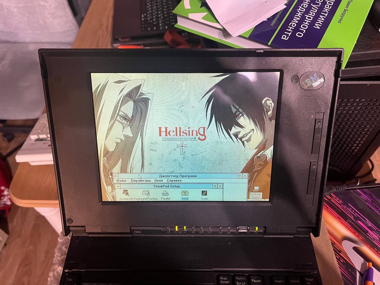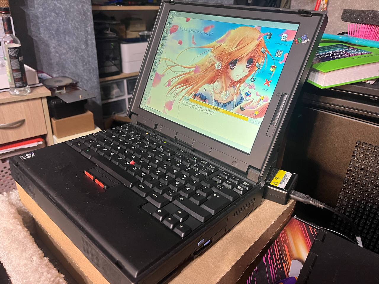 Машина приехала ко мне с установленной Windows 7, поэтому я решил найти и залить фирменную XP Pro. Образ восстановления удалось найти только английский, но для соответствия изначальной локализации я просто установил поверх MUI. Что понравилось - в родной винде практически нет Bloatware, благодаря чему ноутом комфортно пользоваться даже с 256 Мбайт памяти, чего не скажешь о ThinkPad - там меньше 512 было некомфортно уже на Т30.