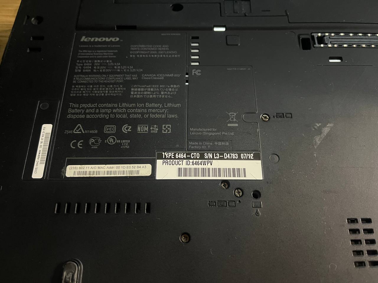 И вот сегодня, зашел я в гости в Ленинградский Компьютерный Клуб и один из участников достает Т61, предлагая его за очень небольшую цену - его такое для коллекции не очень интересует. Я покупать не собирался, но решил все же глянуть конфиг. Каково же было мое удивление, когда я увидел знакомый код конфига - 6464-CTO (вообще это код любого заказного конфига, но в России сервиса заказа нет и 99% процентов заказных машин шли с английской клавой для американского рынка, где сервис заказных конфигов есть. Наши же машины были изначально заказаны с русскими клавами), русскую оригинальную клавиатуру и ровно тот конфиг, что мы тогда заказали! В общем, после этого я ее не мог не купить.