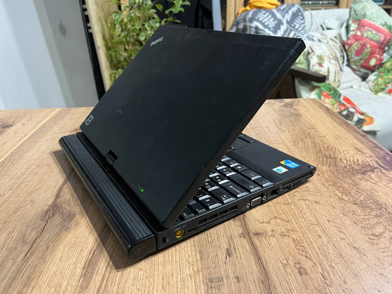 Пойду, пожалуй, не по порядку, а начну с самой редкой машинки из прибывших. Это ThinkPad X201 Tablet. Х201 в целом как-то очень быстро промелькнули и ушли. В отличии от Т410/Т510 с тем же поколением начинки, которых выпущено было намного больше. Внешних изменений в сравнении с Х200 на основе Core 2 Duo минимум - главное внутри. Снаружи разве что добавился тачпад, а вот начинка сменилась радикально, вместо Core 2 Duo тут первое поколение Core i7 - со встроенными в процессор видео и контроллером памяти. Конкретно здесь - Core i7-620LM, не просто мобильная, а низковольтная версия. Батарея, кстати, до сих намерена жить около пяти часов!