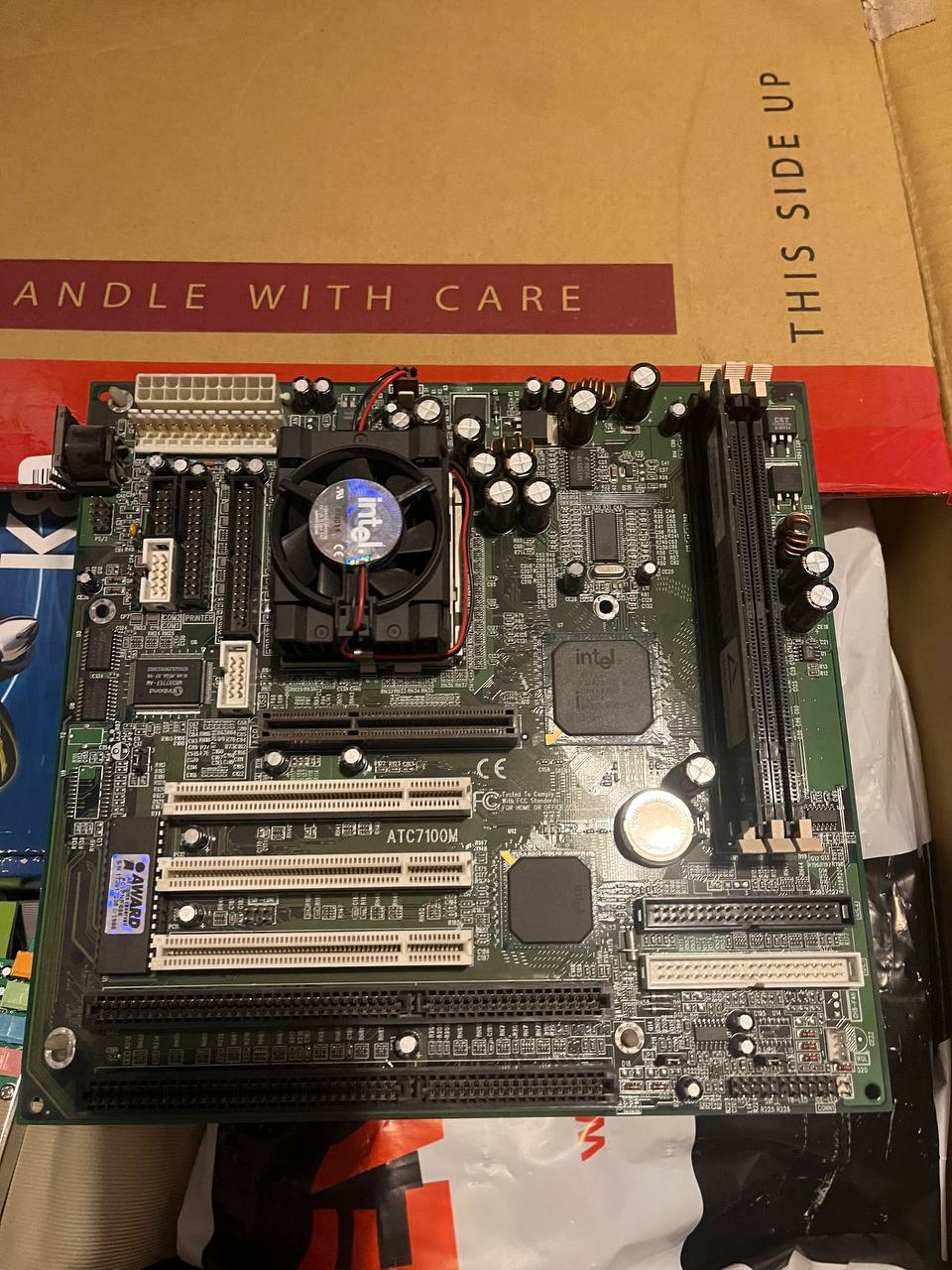 Во-вторых несколько интересных и нечастых материнок - Iwill на 430VX, Atrend на 440LX, очередная версия Acorp 6A815 - с видео, но без звука, Альбатрон Сокет А со встройкой от nVidia и ранняя плата со SLI от Leadtek/Winfast. И, главное, жемчужина - ASUS P4G8X на чипсете E7205 - первом двухканальном DDR чипсете под Pentium 4! Плюс пара хороших видях - 6800GT и X1950 Pro! Кажется, пора обновлять PC сборки!!! Подписчику огромное спасибо за шикарный подгон! |