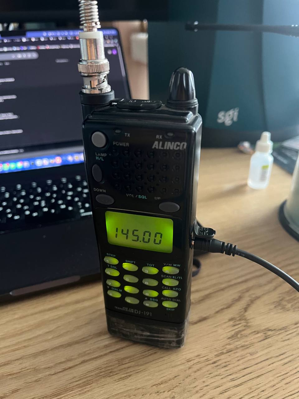 Еще чуточка радиосвязи. VHF ходи-болтайка Alinco DJ-191, аж из середины 90х. Надежная лошадка, по меркам времени еще и довольно навороченная. 5 Вт, 144-146 МГц из коробки, через настройки раскрывается до 130-180 (работает и на передачу, но без лицензии на использование частот это не законно). Что приятно - завелась сразу, после 20 лет лежания в ящике!