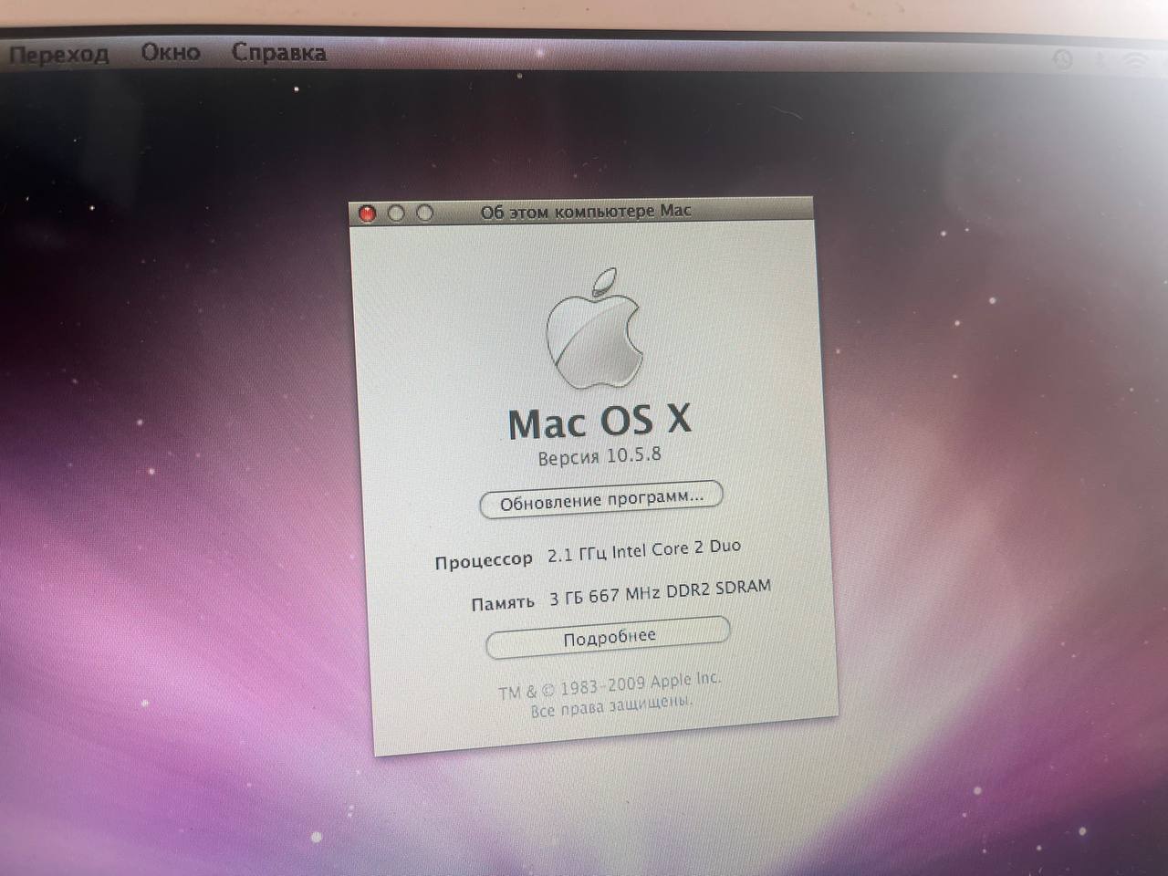 Почти такой ноутбук был моим первым маком в 2012 году - то была машина 2009 года на чипсете nVidia с куда более приятной встройкой на борту, чем интеловские карты. Тогда это был эксперимент и по результатам я просто влюбился в макось, но вот сам ноут оставлял смешанные чувства после ThinkPad T61. Внутри представленного экземпляра: Core 2 Duo T8100 3 Гбайт ОЗУ 120 Гбайт жесткий диск Экран 13" 1280х800